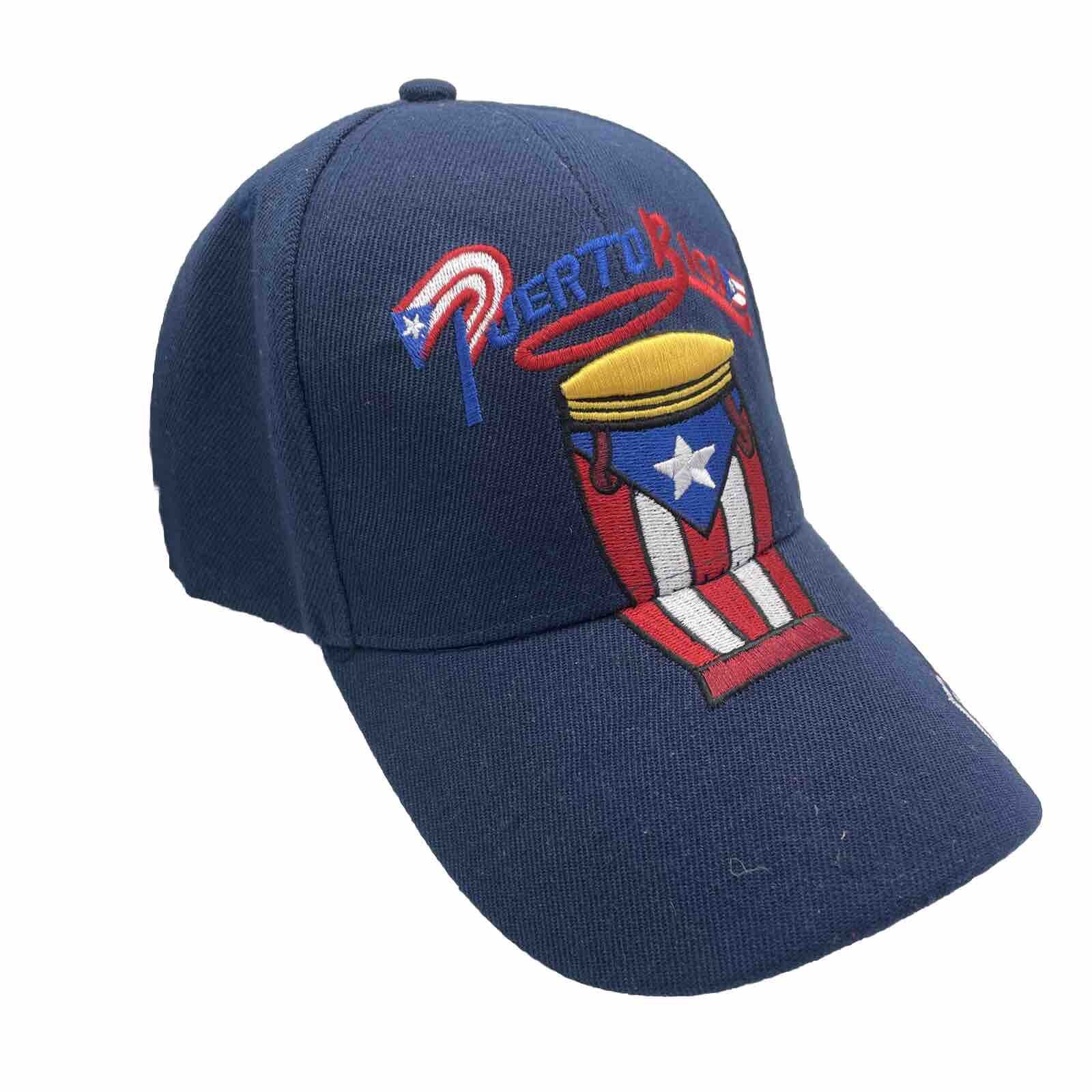 PUERTO RICO BASEBALL CAP PR 3D EMBROIDERED FLAG AT BACK NAVY BLUE HAT