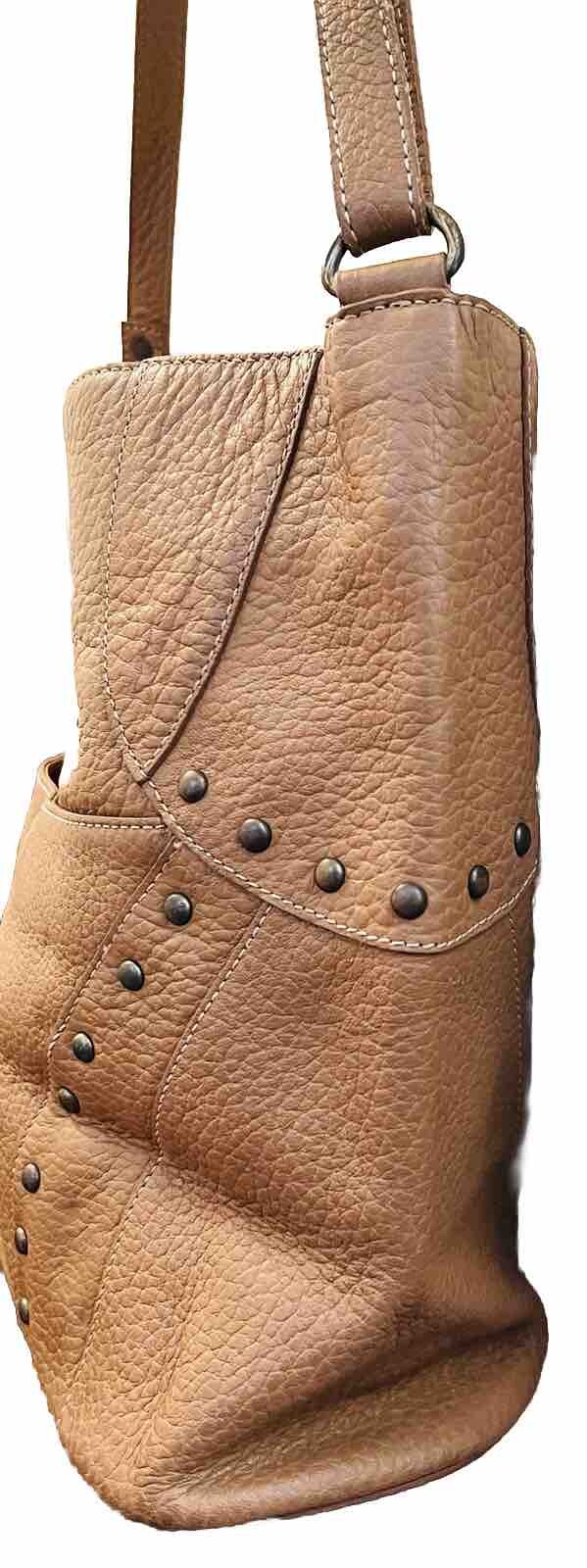 MAXX NEW YORK SHOULDER HOBO SATCHEL TOTE BAG BROWN PEBBLE LEATHER STUDS