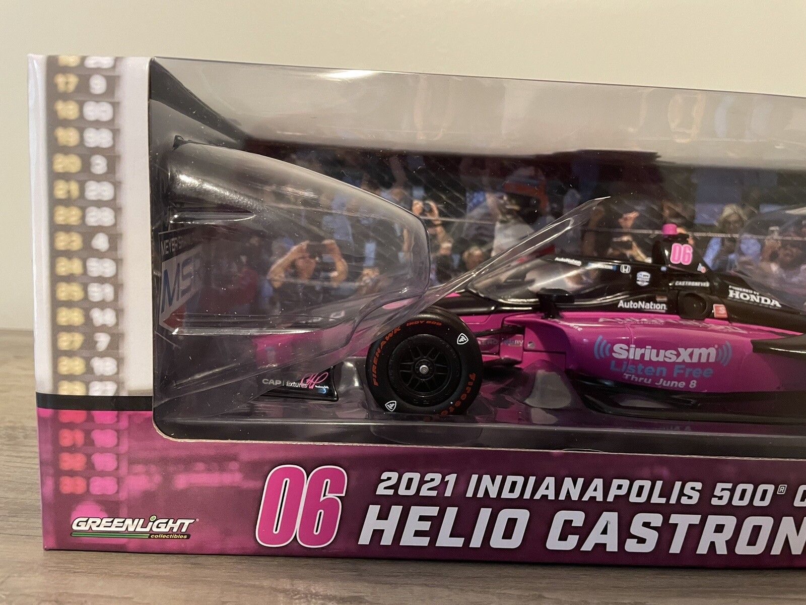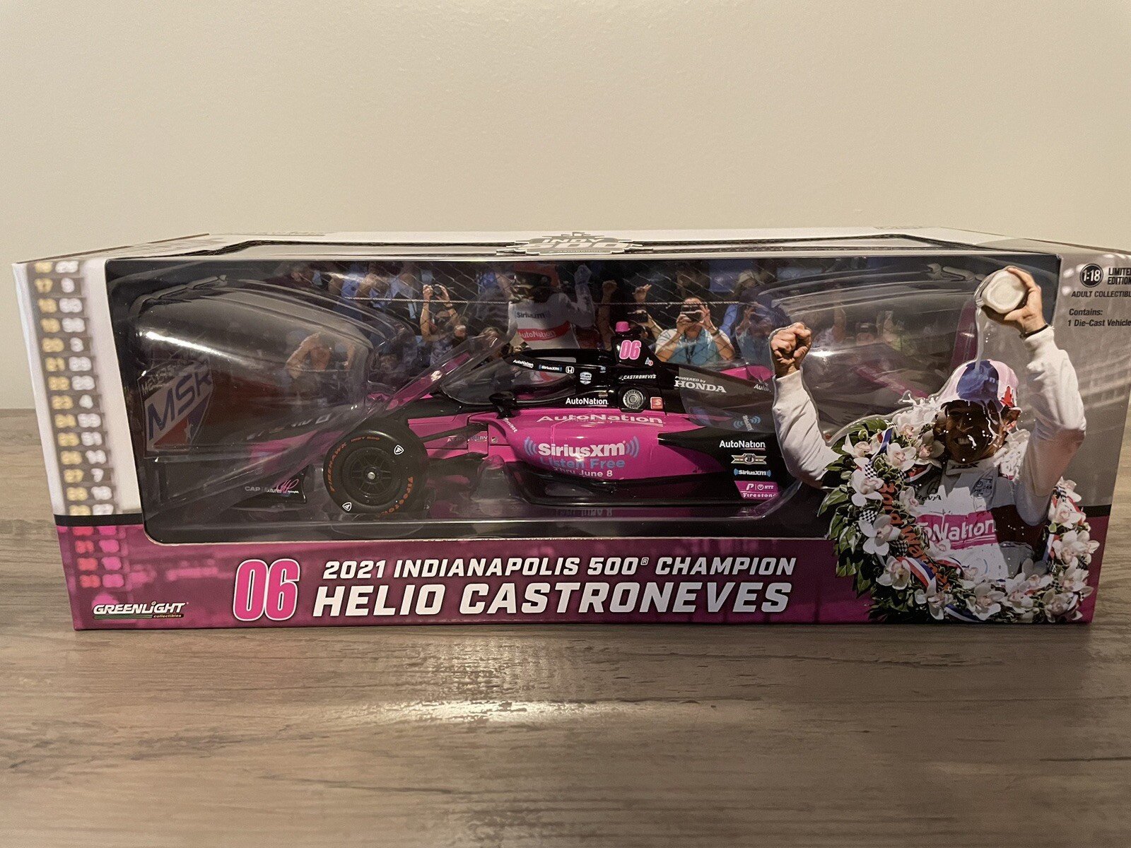 • Helio Castroneves 2021 Auto Nation Indy 500 Champion Greenlight 1/18