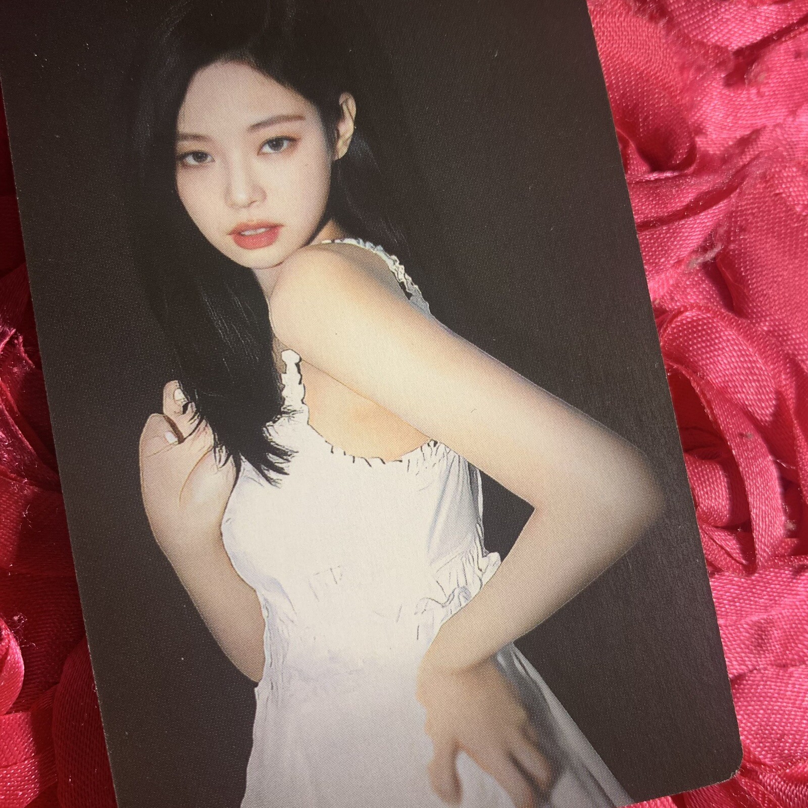 как выглядит JENNIE BLACKPINK Crystal Flower Edition Kpop Girl Photo Card Pretty White Dress фото