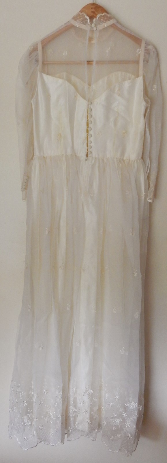 как выглядит Vintage Wedding Gown Dress Antique White Ivory HAND MADE Voile Rosettes No Size фото