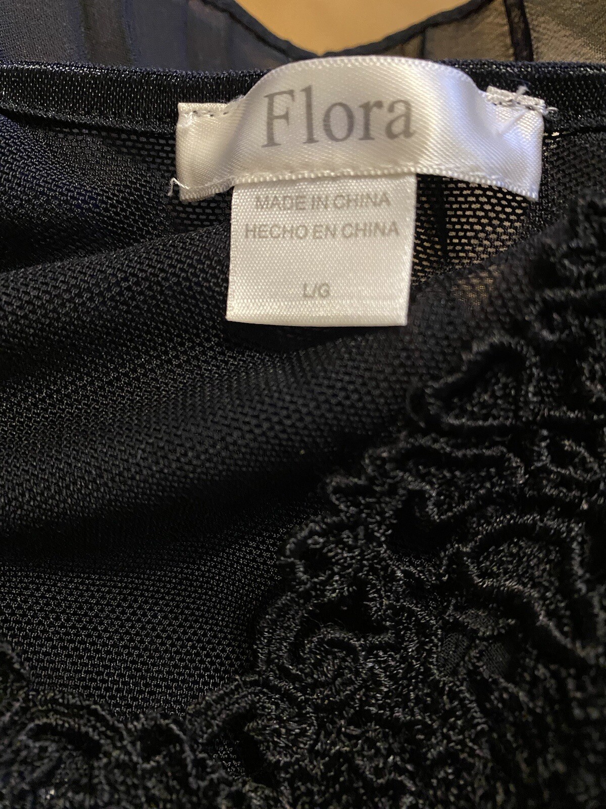 Flora Women s Lace Sleepwear Chemises Babydoll Nightgown Black Sheer Large