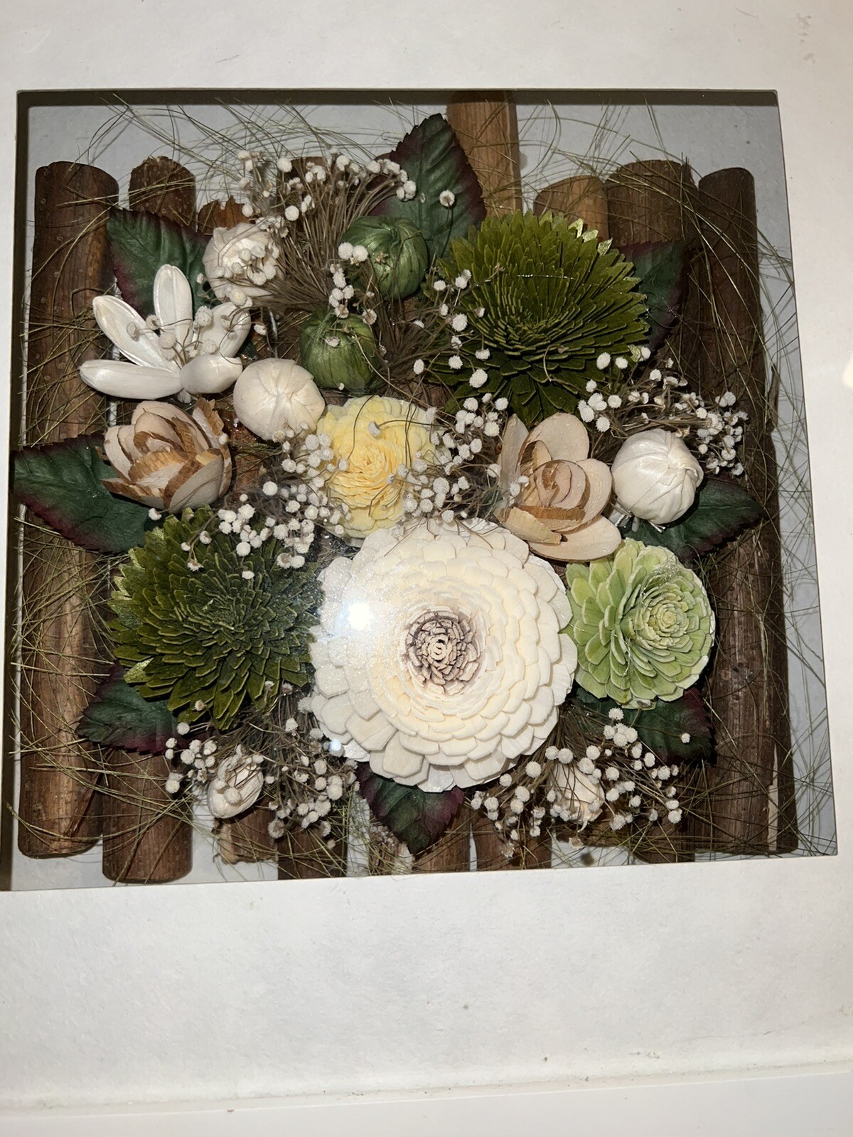 как выглядит White Shadow Box Wall Display with Dried Flowers фото