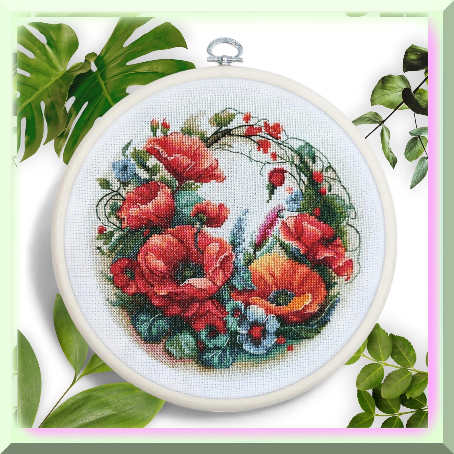 как выглядит Poppy Fields Cross Stitch Kit: BC209 - Engaging Adult Embroidery Kit with Hoop C фото