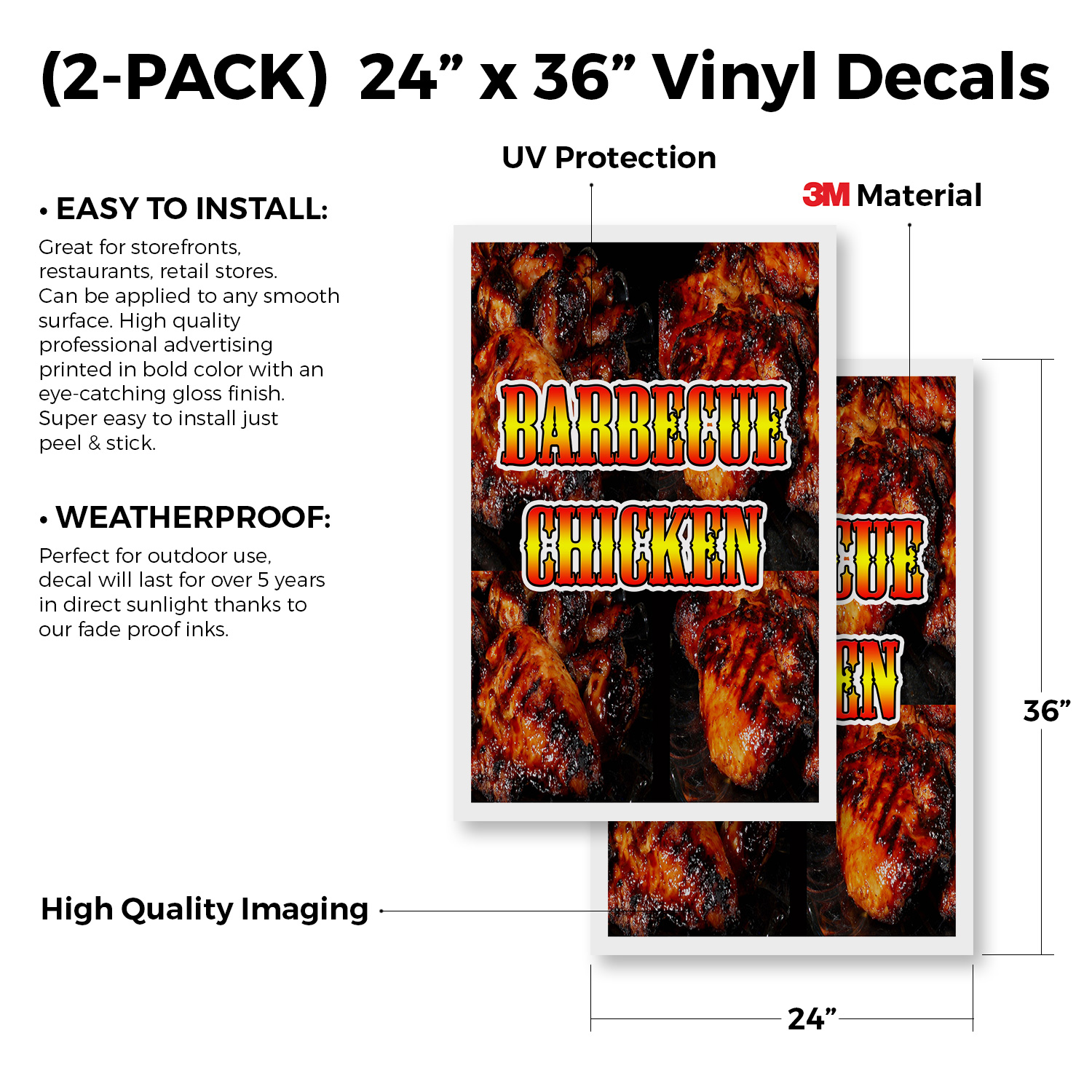 Barbecue Chicken 24 x 36 2 Pack Of Store Sign Plastic Or Decal
