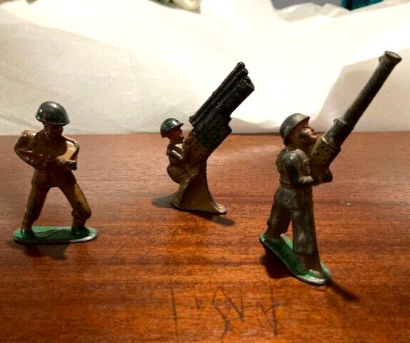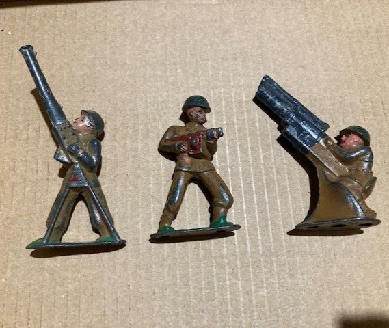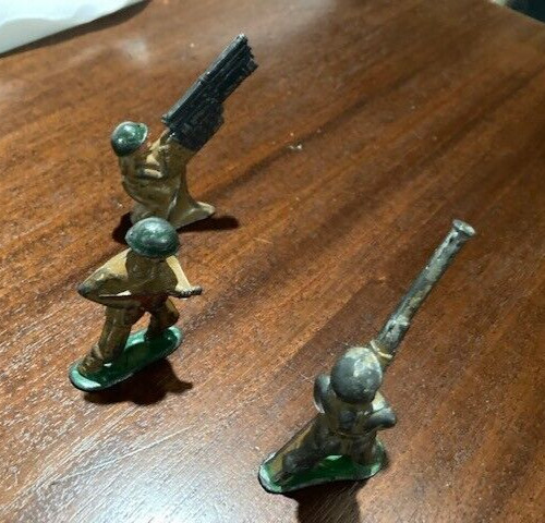 VTG 1940 s , LOT OF 3 BARCLAY MANOIL METAL SOLDIERS, G CD, ORIG. FAMILY OWNER