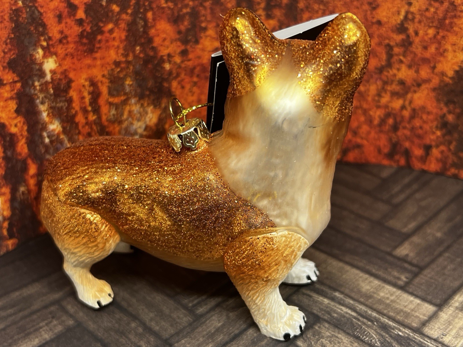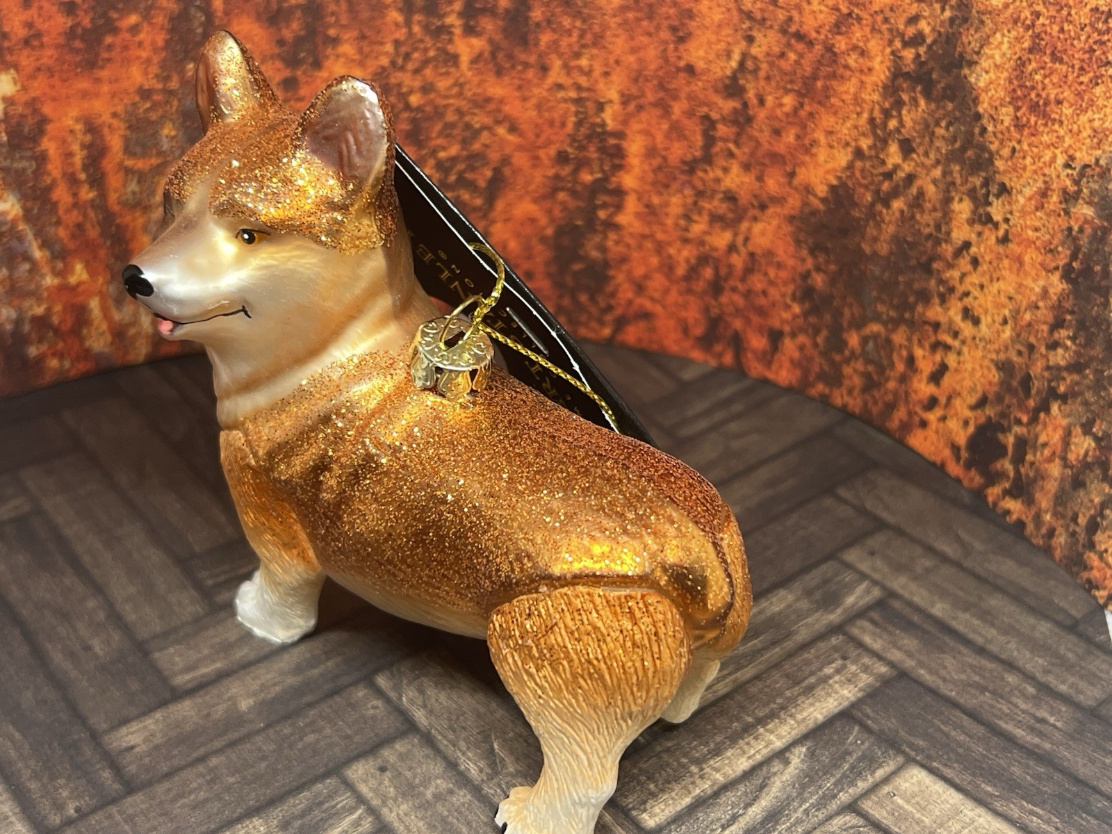• Puppy Dog Lover Corgi Amber White Hat Scarf Glass Resin Figure NEW Ornament