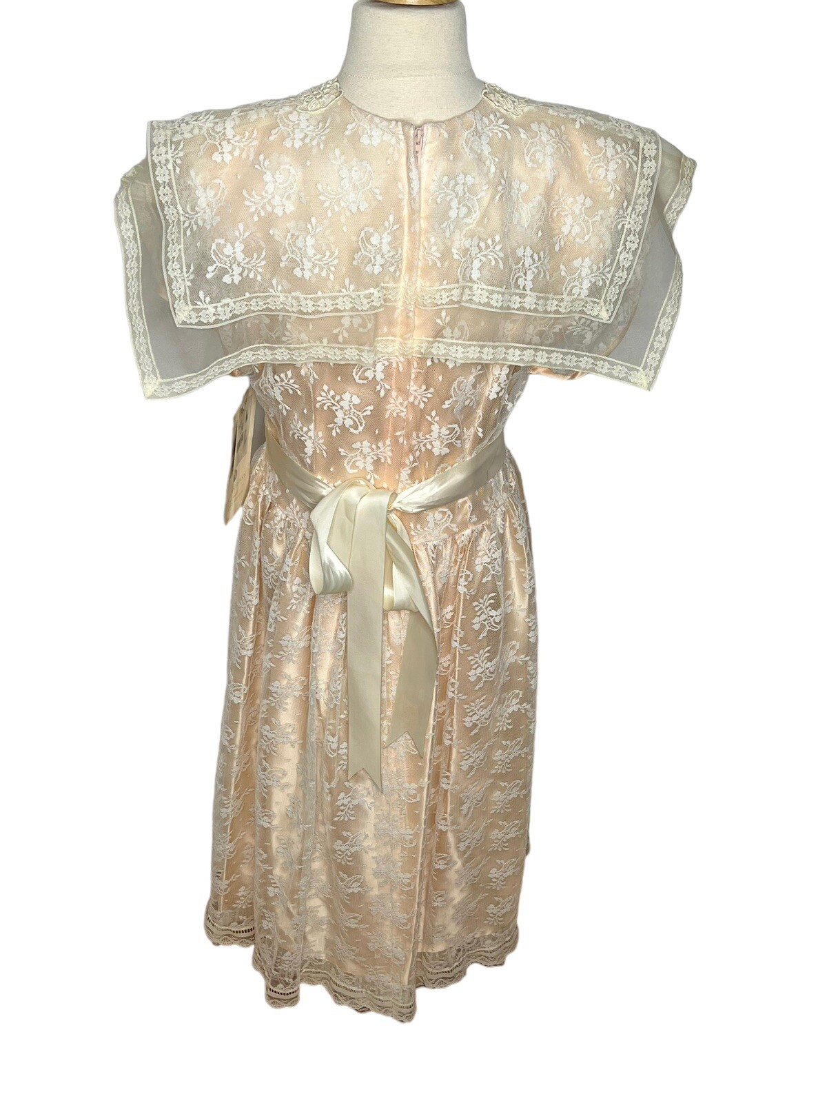 Vtg Jessica McClintock Girls Cream Peachy Lace Overlay Flower Girl Dress Size 8