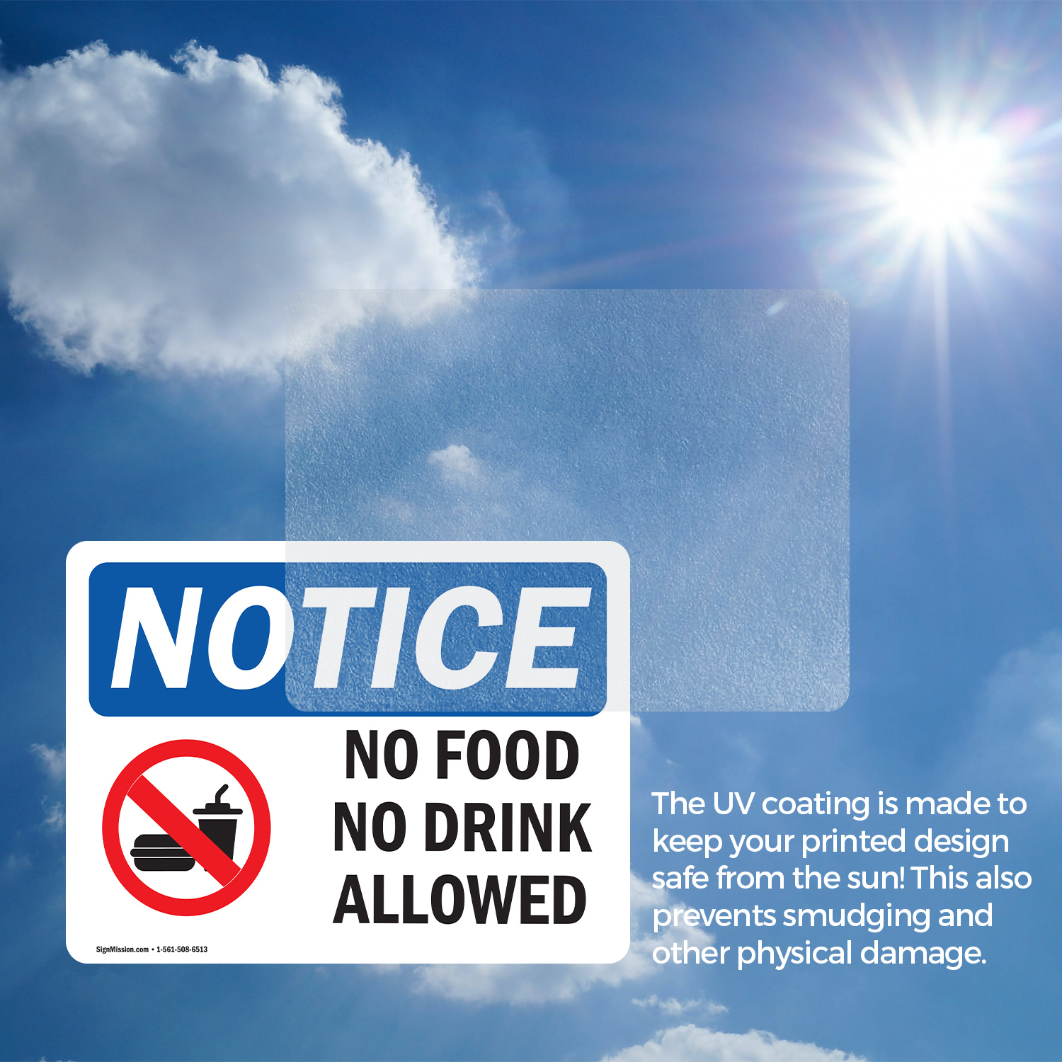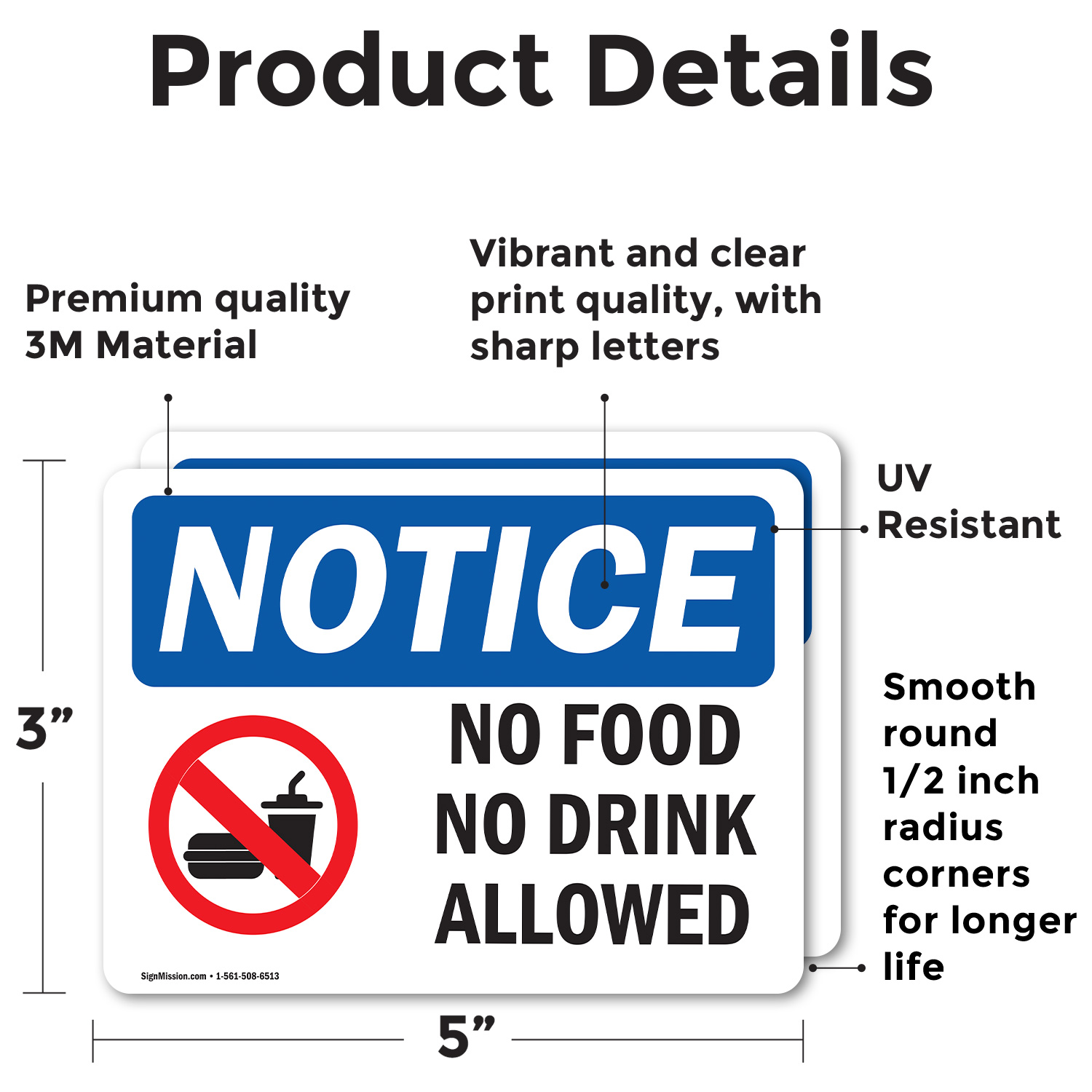 2 Pack No Food No Drink Allowed OSHA Notice Sign Decal Metal Plastic