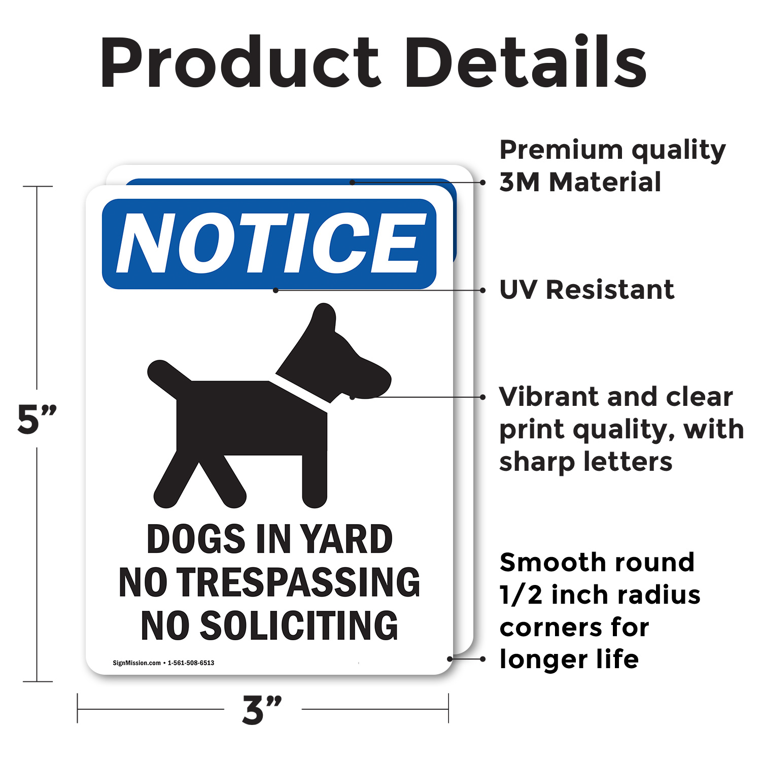 2 Pack Dogs In Yard No Trespassing OSHA Notice Sign Decal Metal Plastic