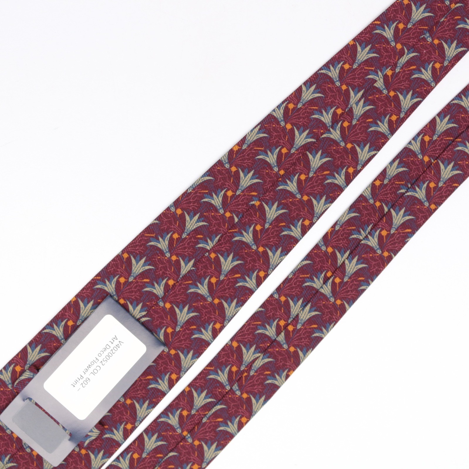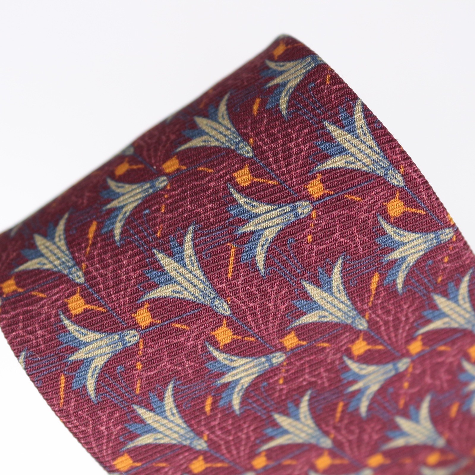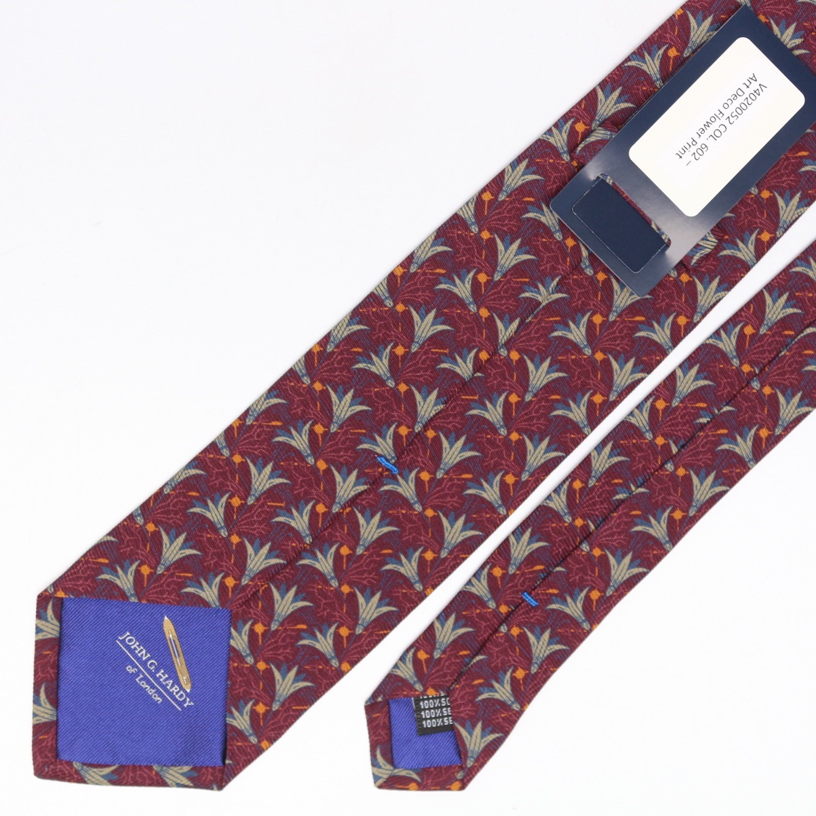 John G Hardy Mens Silk Necktie Burgundy Gray Orange Floral Print Made in Italy