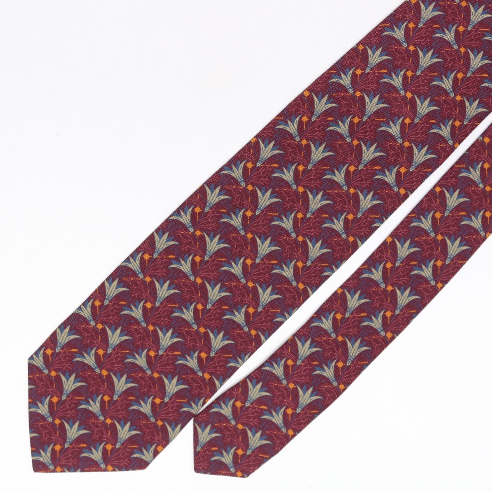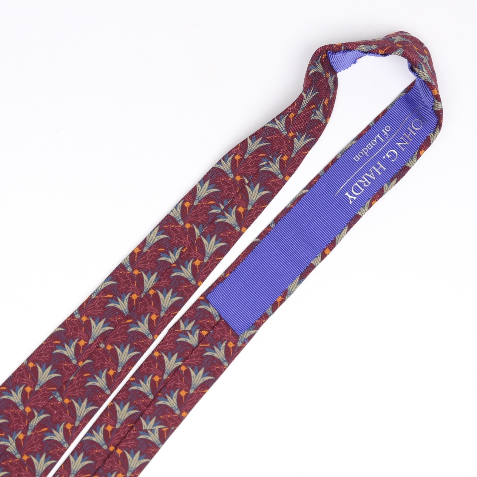 как выглядит John G Hardy Mens Silk Necktie Burgundy Gray Orange Floral Print Made in Italy фото