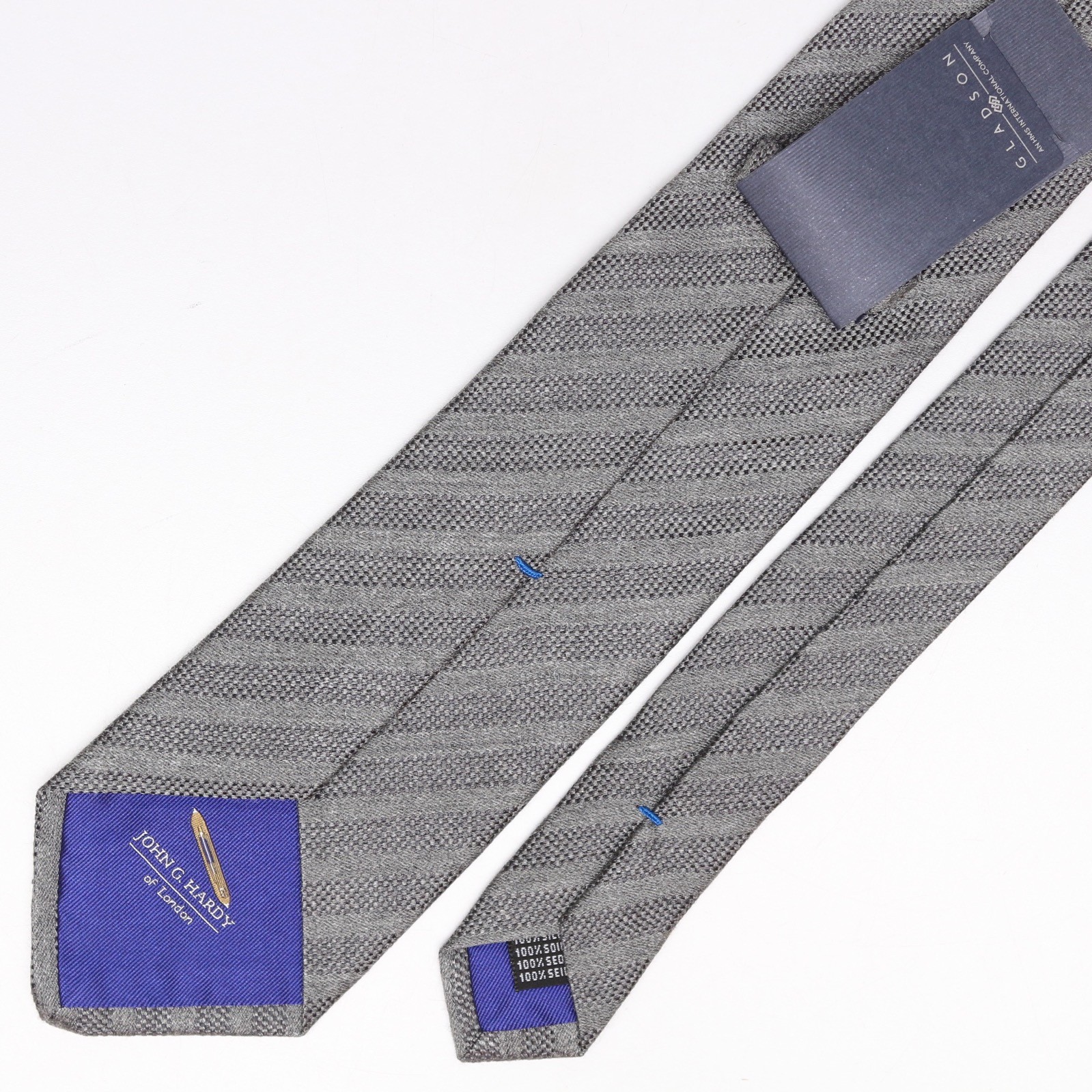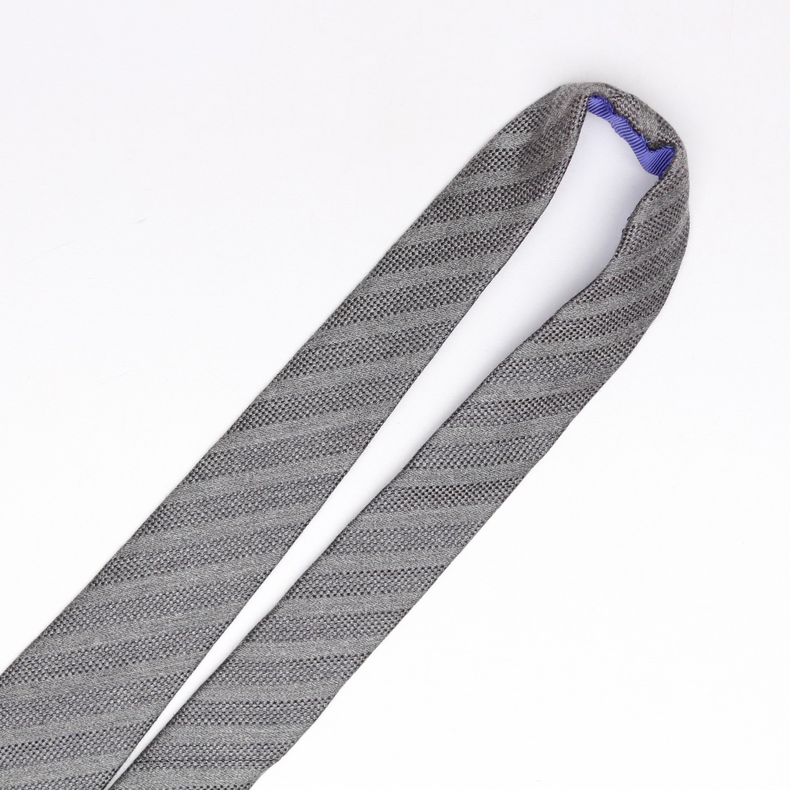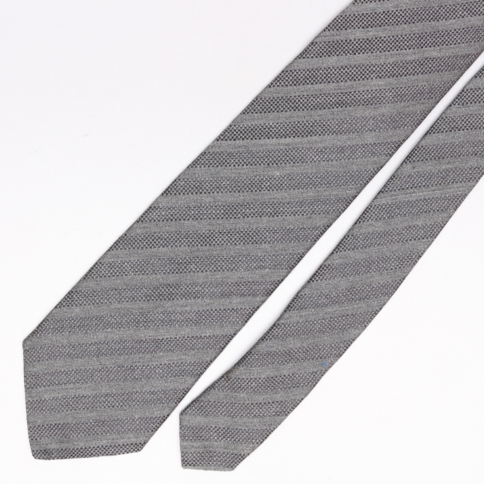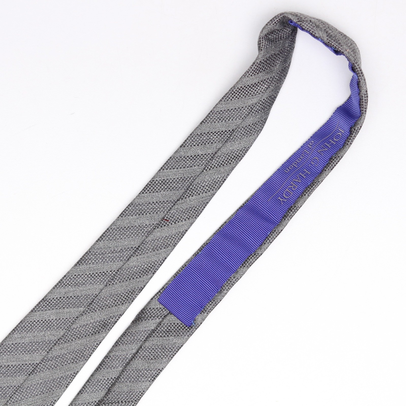 John G Hardy Mens Silk Necktie Solid Gray Stripe Textured Weave Woven Tie Italy