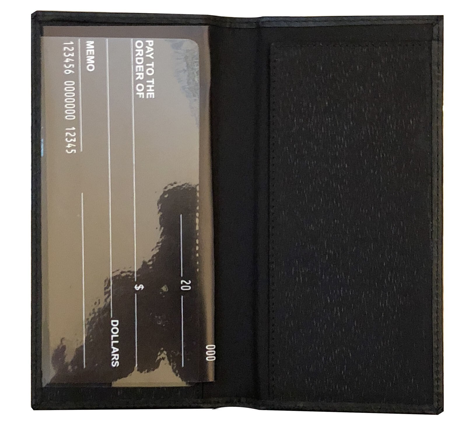 как выглядит Black Genuine Leather Standard Checkbook Cover Wallet Men Lady