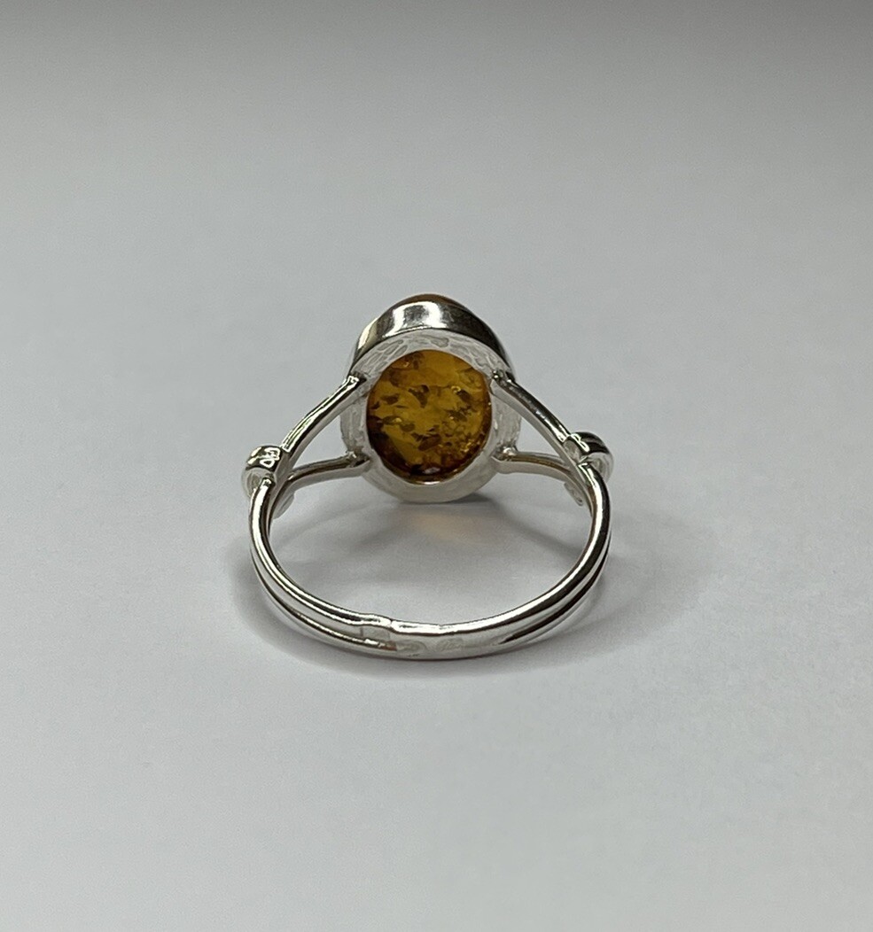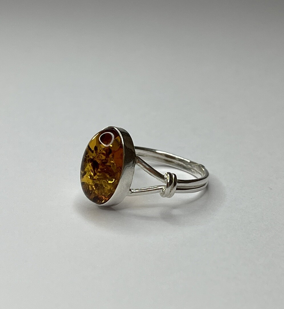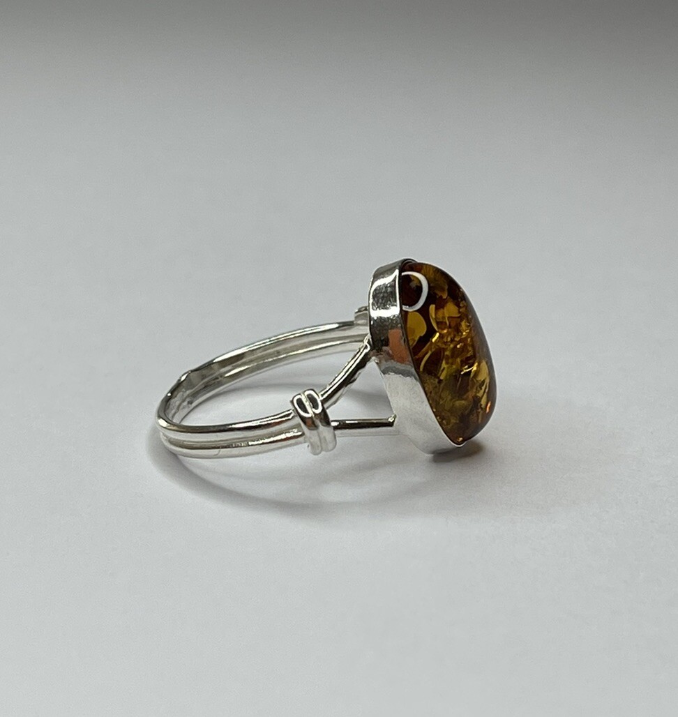 Genuine Baltic Amber Stone Ring with Sterling Silver.Natural COGNAC Amber Ring.