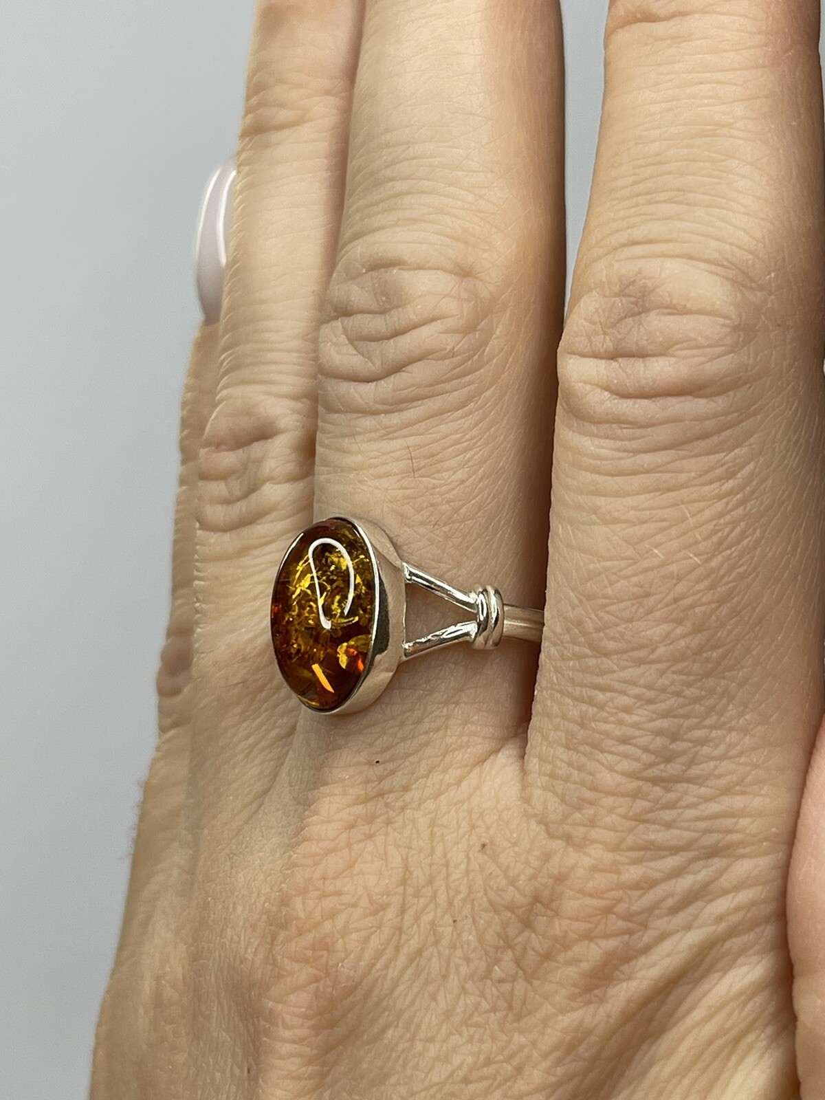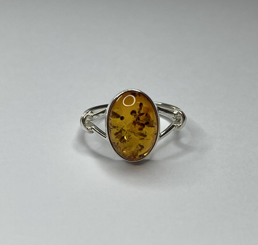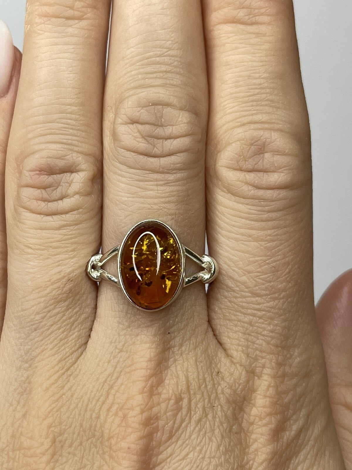Genuine Baltic Amber Stone Ring with Sterling Silver.Natural COGNAC Amber Ring.