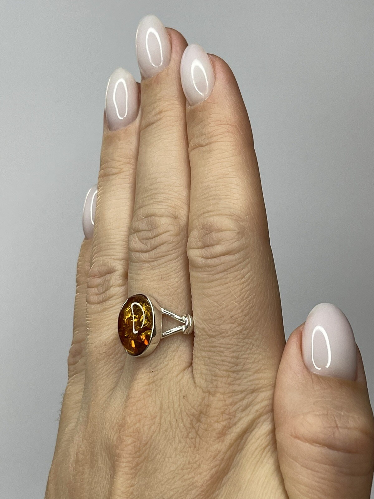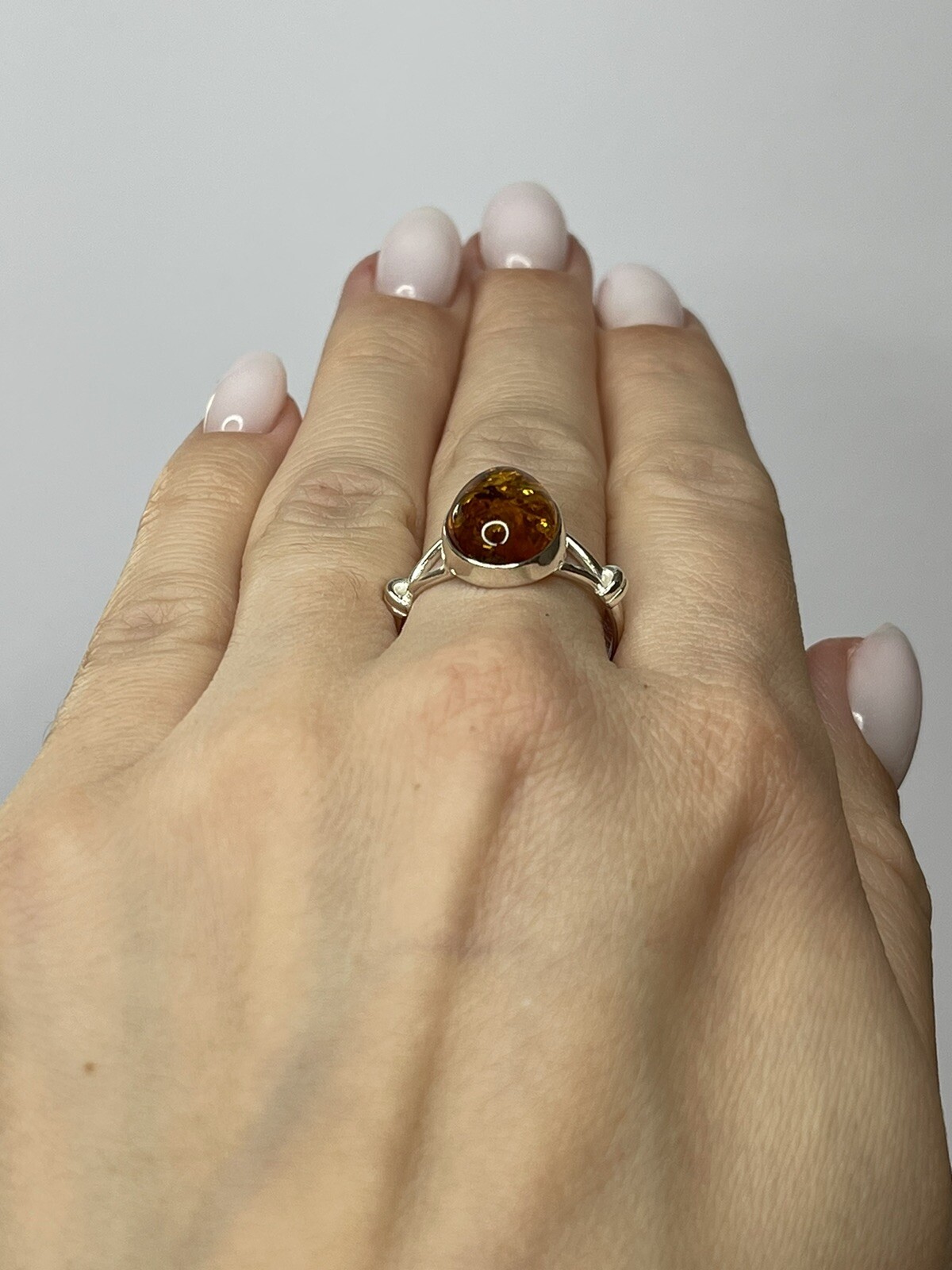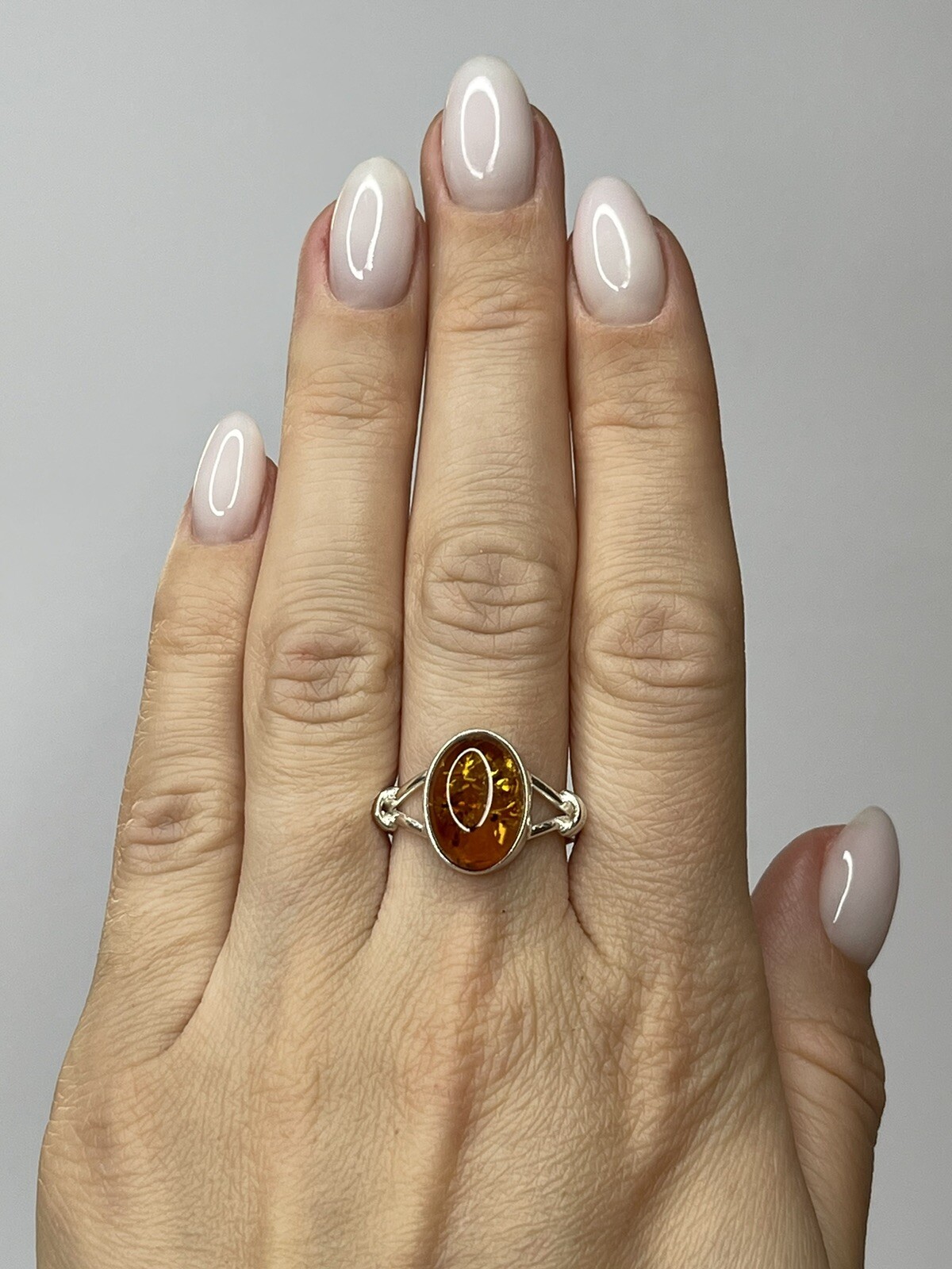 как выглядит Genuine Baltic Amber Stone Ring with Sterling Silver.Natural COGNAC Amber Ring. фото