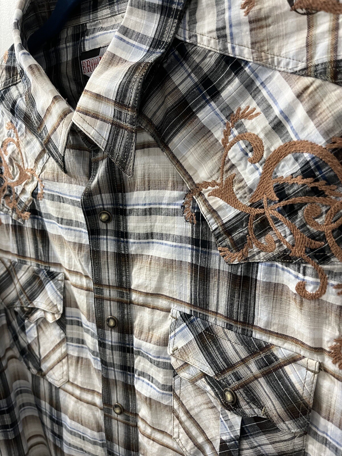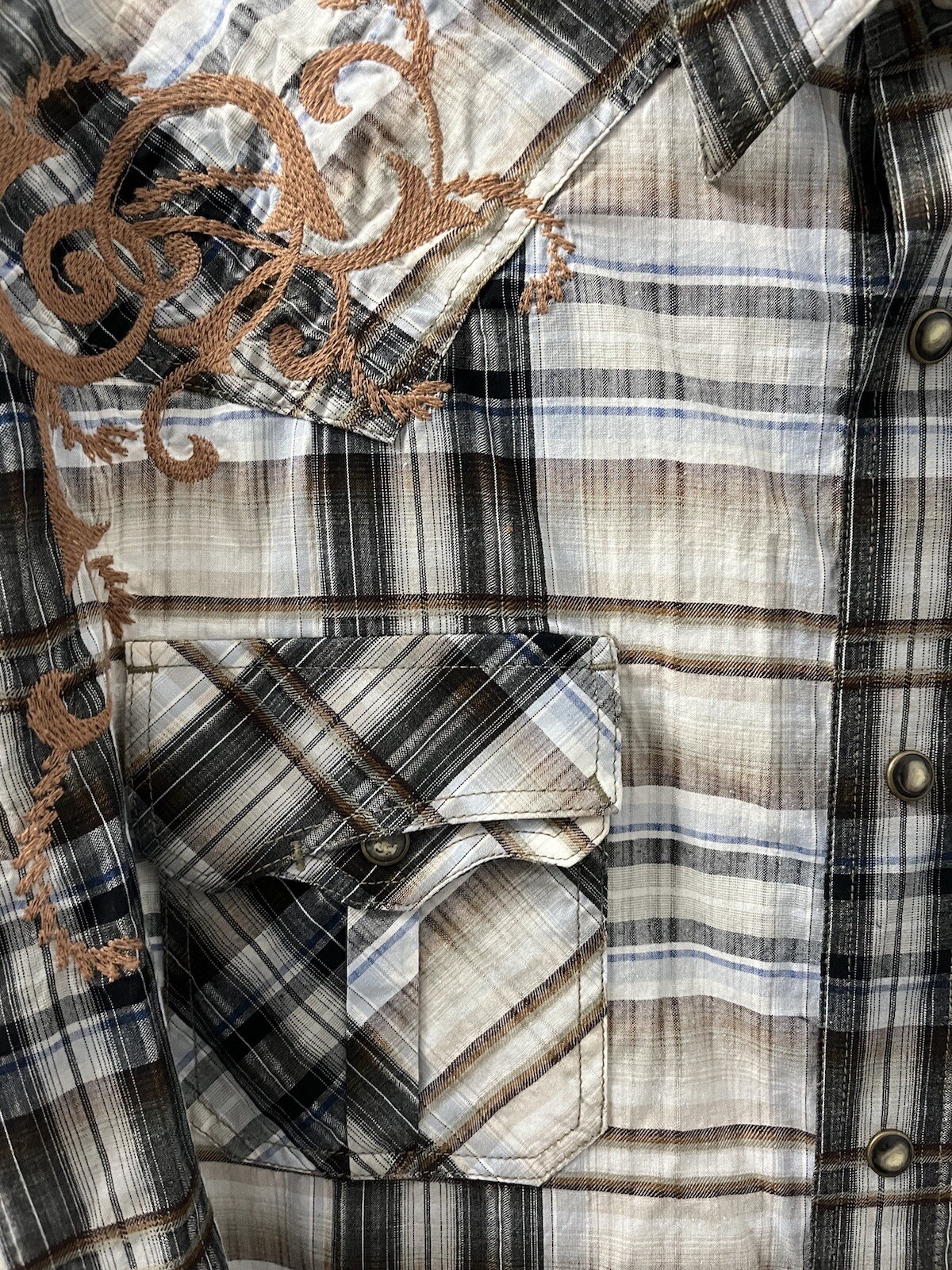 Men s Large Brooks Dunn Collection Pearl Snap Panhandle Slim Embroidered Shirt