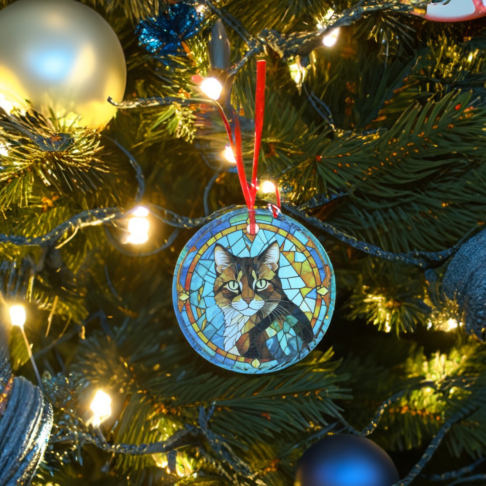 как выглядит Tortiseshell Cat Holographic Ornament фото