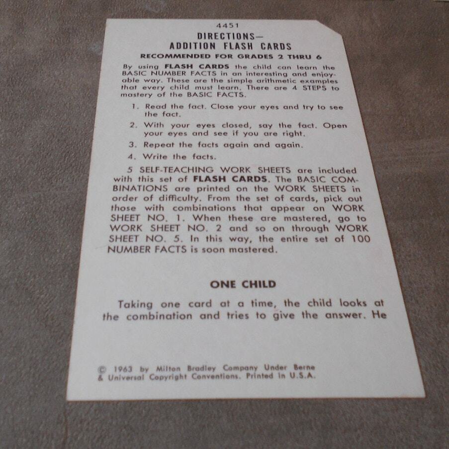 Vintage 1975 Milton Bradley Flash Cards Addition 4451 Complete Grade 2-6