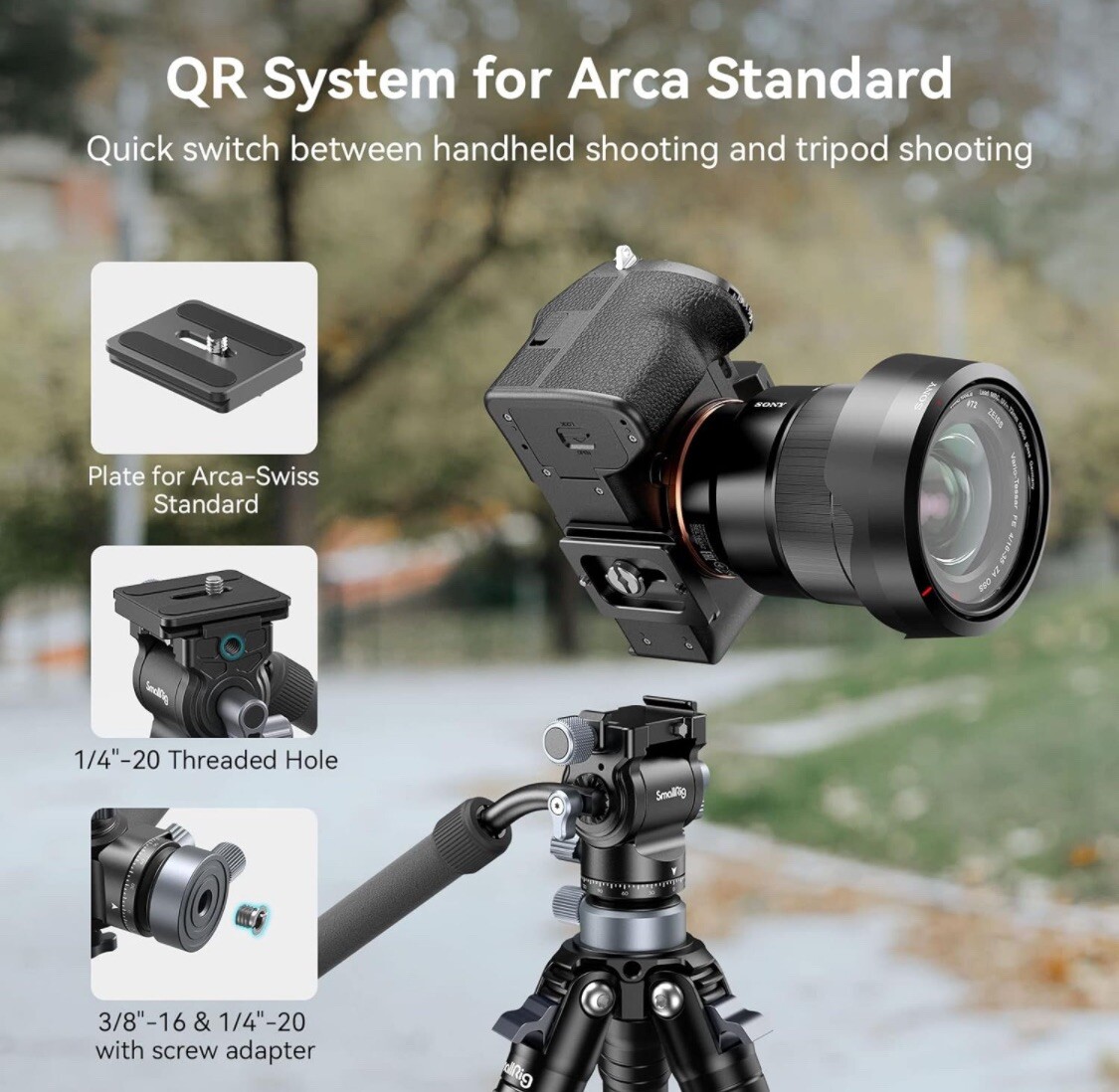 SmallRig CH20 Video Head with Leveling Base Arca-Swiss , Telescoping Handle 4170