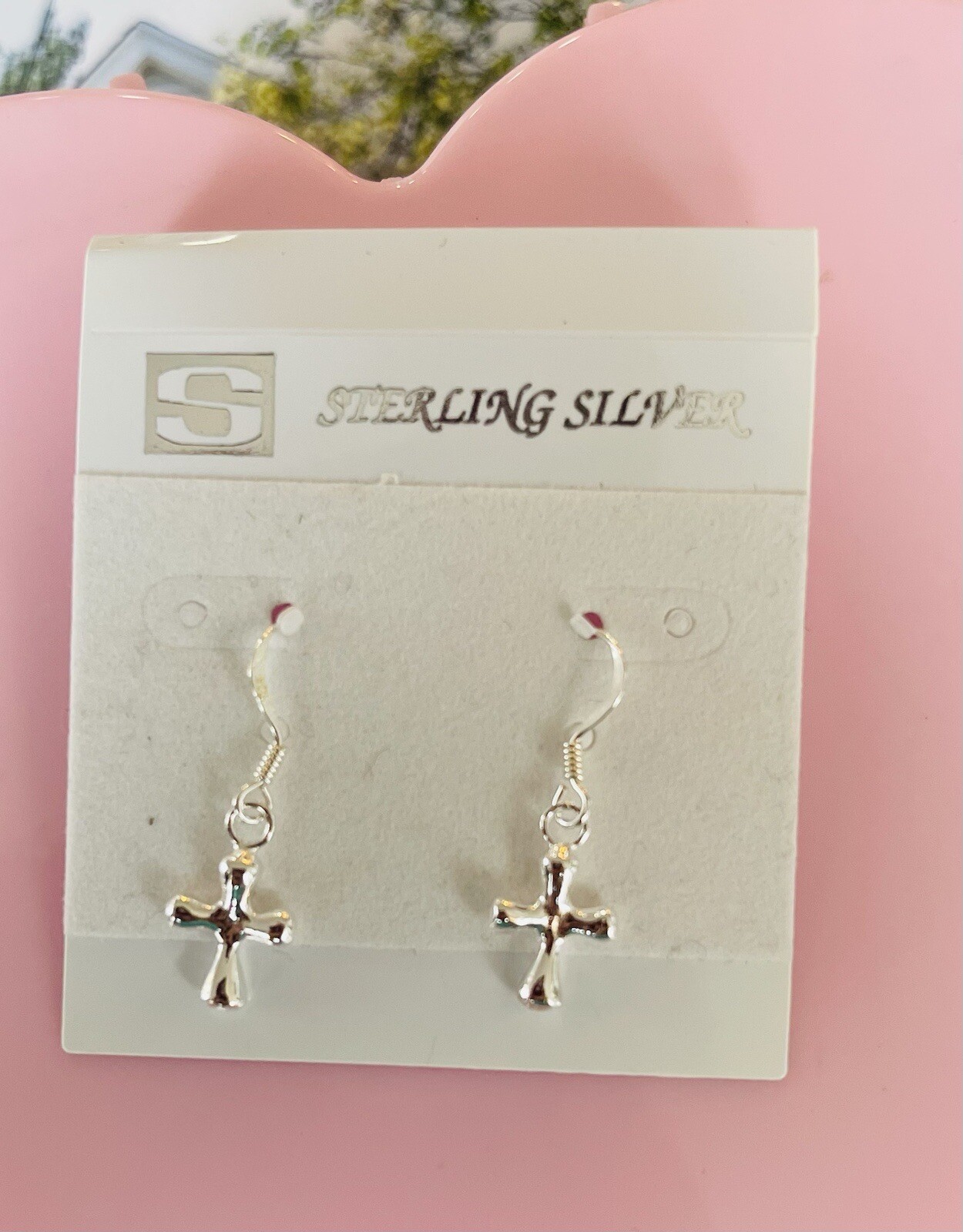 Solid 925 Sterling Silver Cross Dangle Earrings for Woman/teens/boys/men
