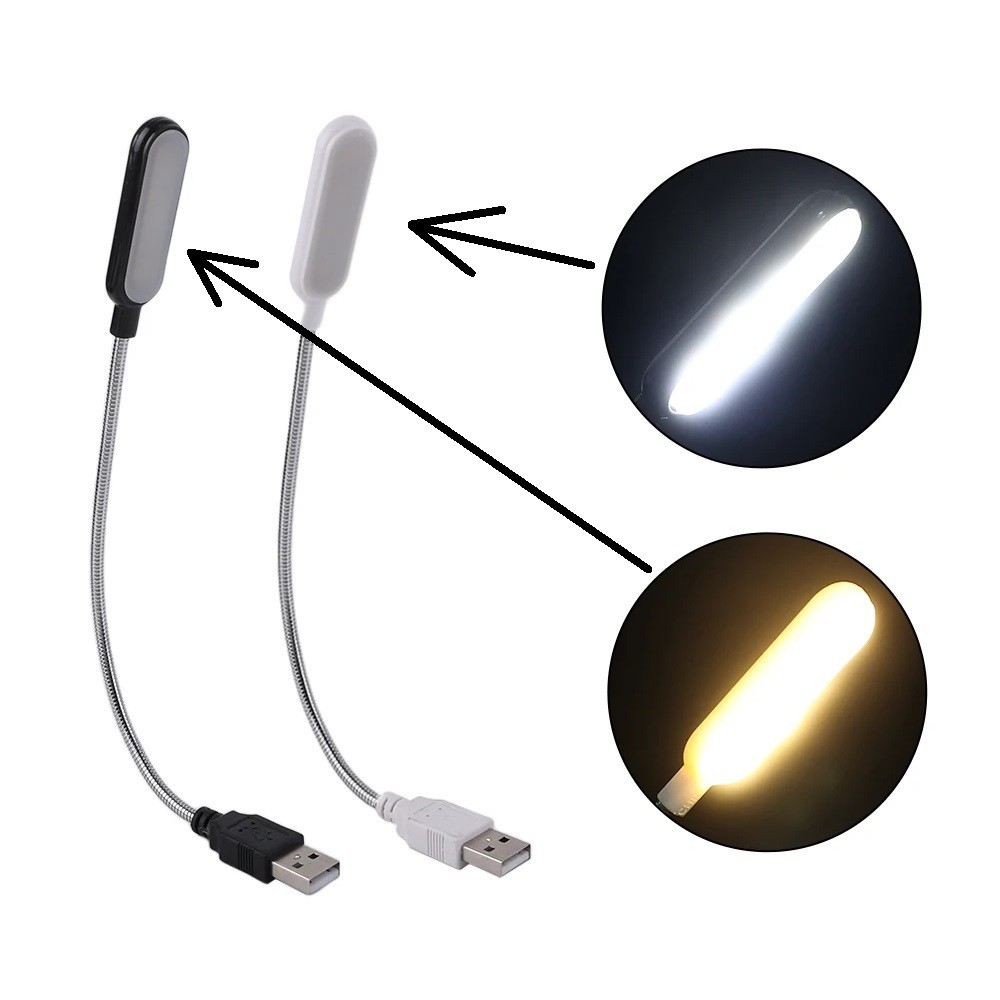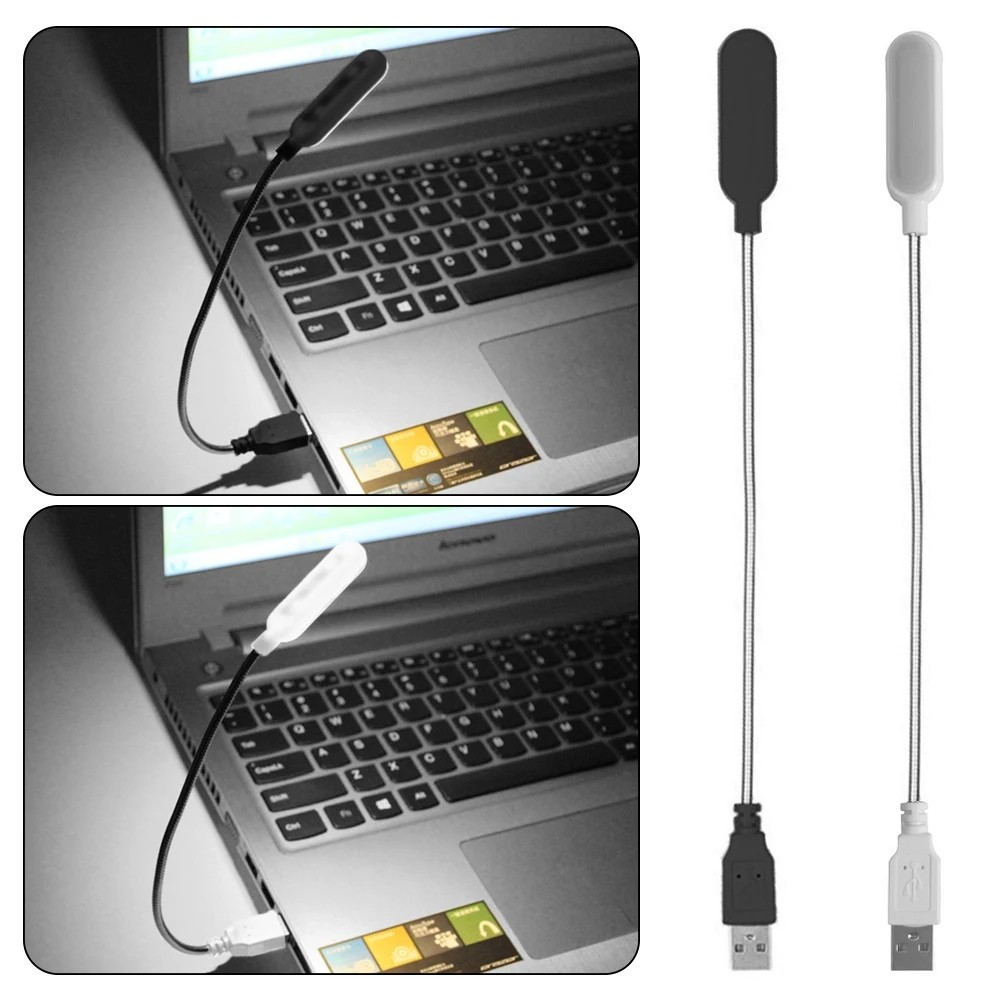 2x USB Laptop Computer PC Reading Lights Metal Flexible Bendable White/Black
