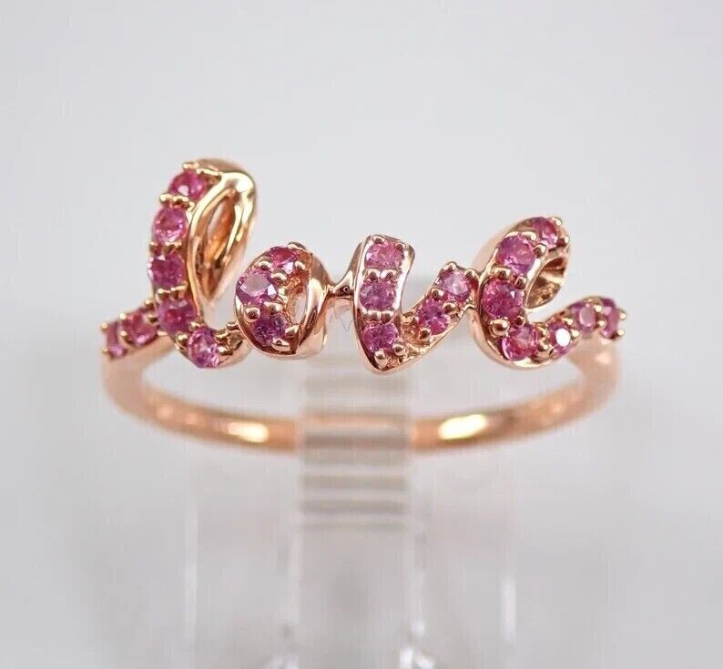 как выглядит Gorgeous "LOVE" Band Ring Round Cut Simulated Pink Ruby 14K Yellow Gold Plated фото