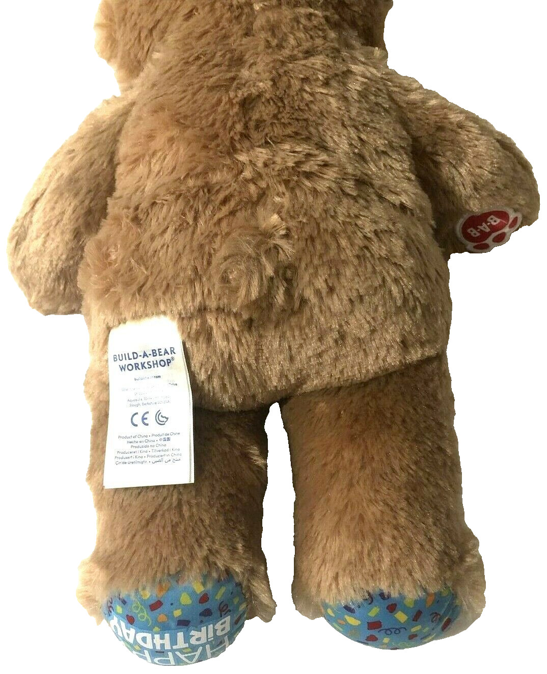 Build a Bear Happy Birthday Bear 15 Brown Plush Blue Confetti Paws BABW 2018