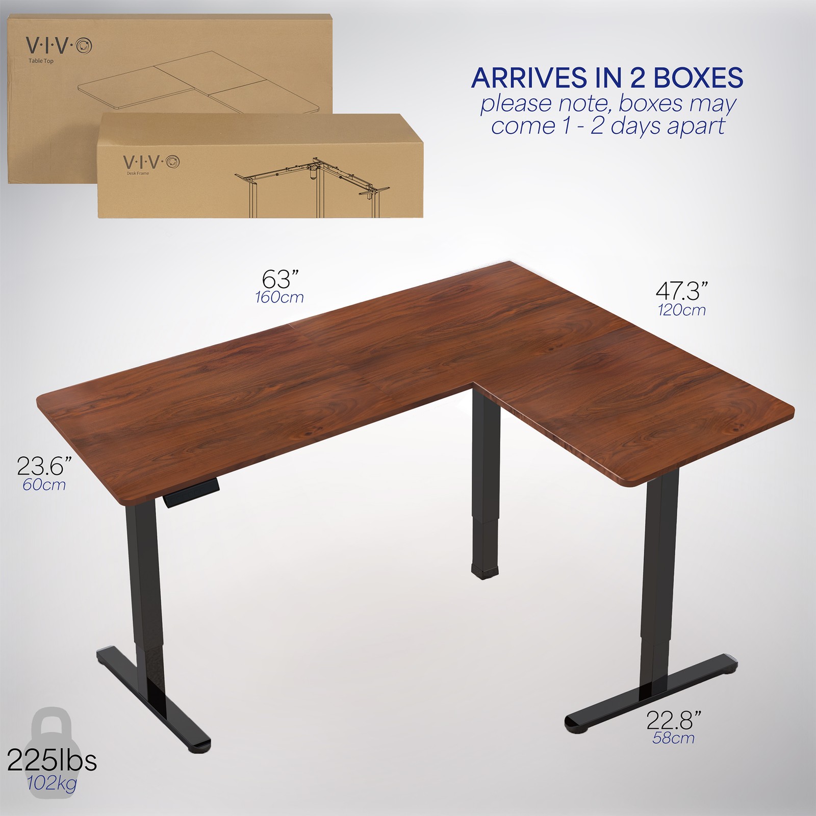 VIVO Dark Walnut / Black Electric 63 x 47 Corner Standing Desk