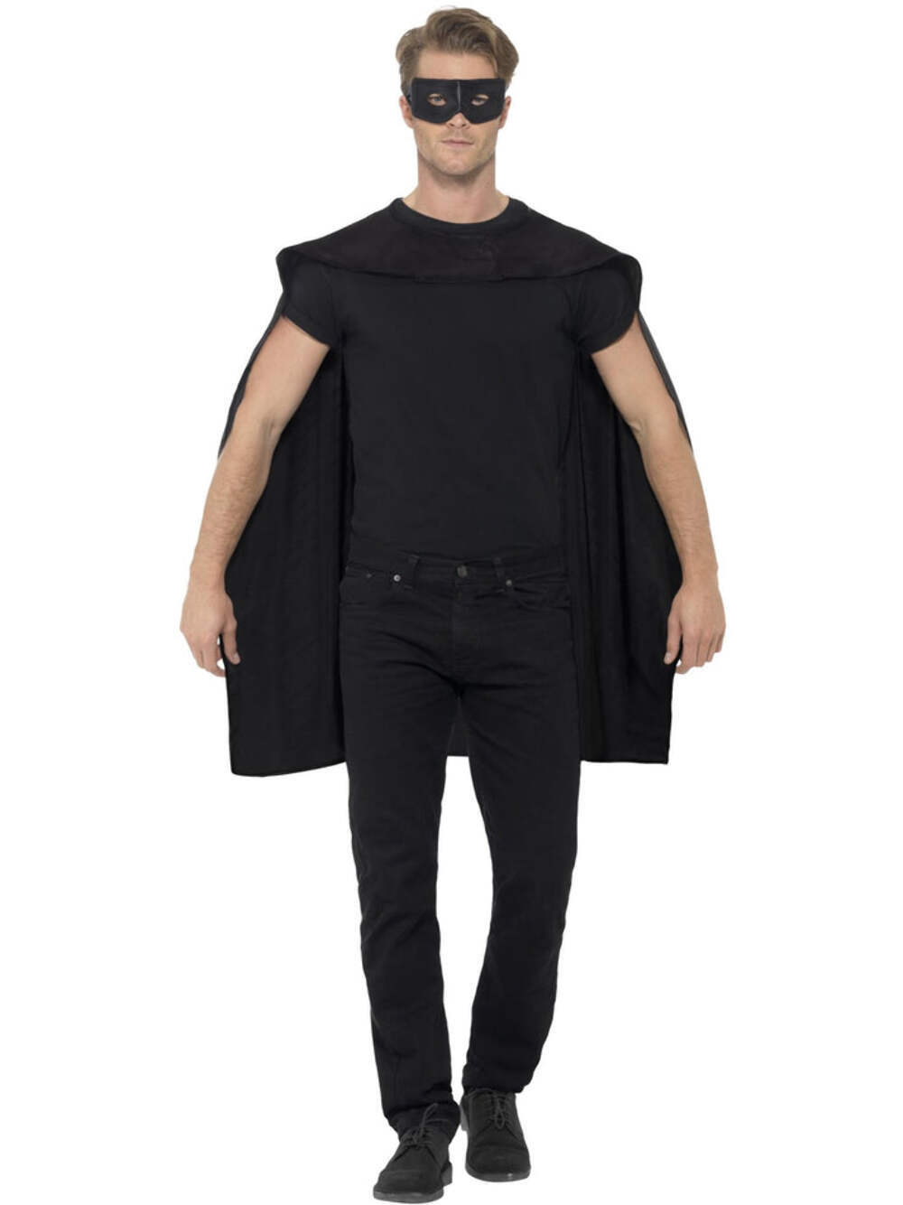 Cape Eyemask Adult Black Superhero Costume Accessory