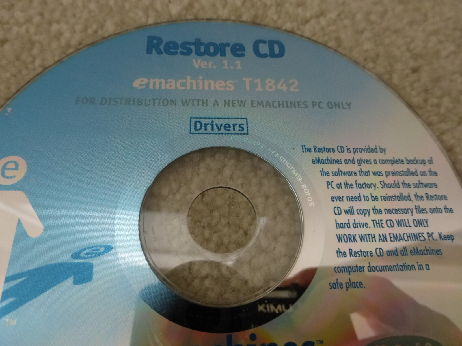 eMACHINES RESTORE BOOTABLE CD DISC VER 1.1 T1842 2 DISC SET OEM