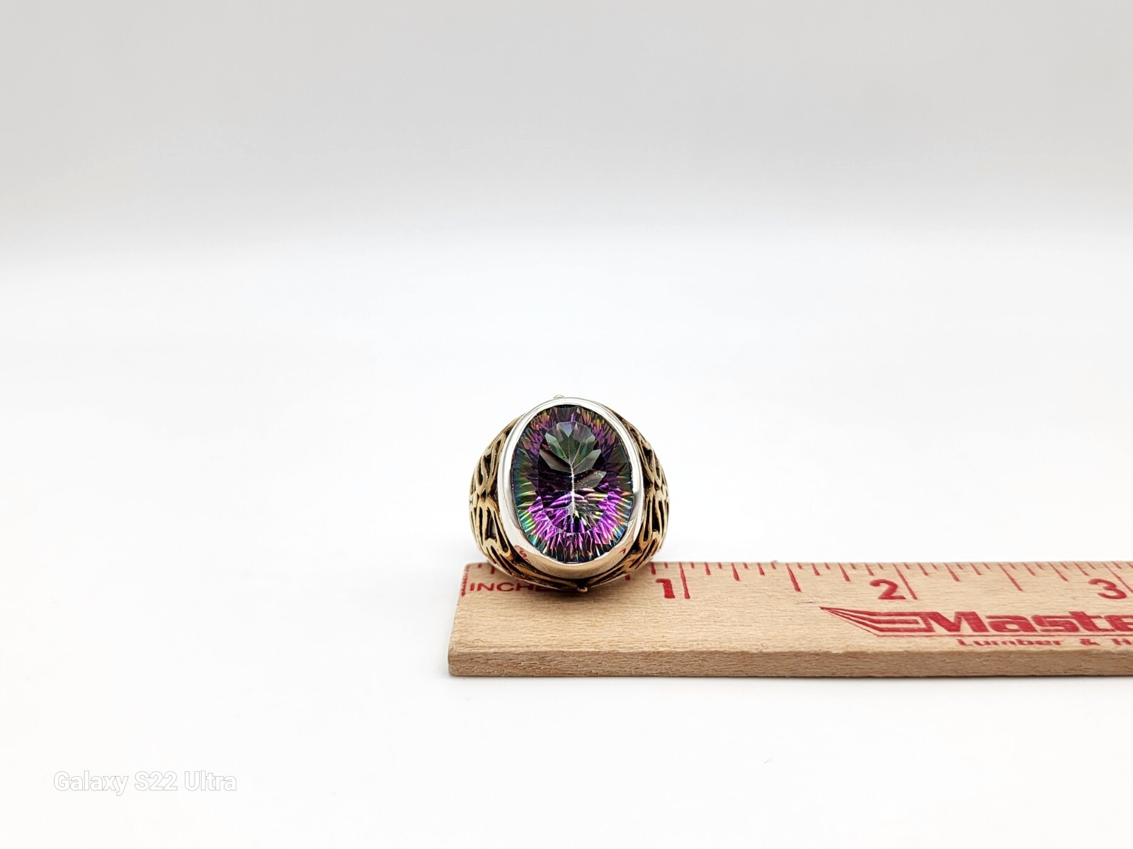 как выглядит NEW DESIGNER STYLE RAINBOW MYSTIC TOPAZ 925 STERLING SILVER SZ.9 RING 17.5 GRAMS фото