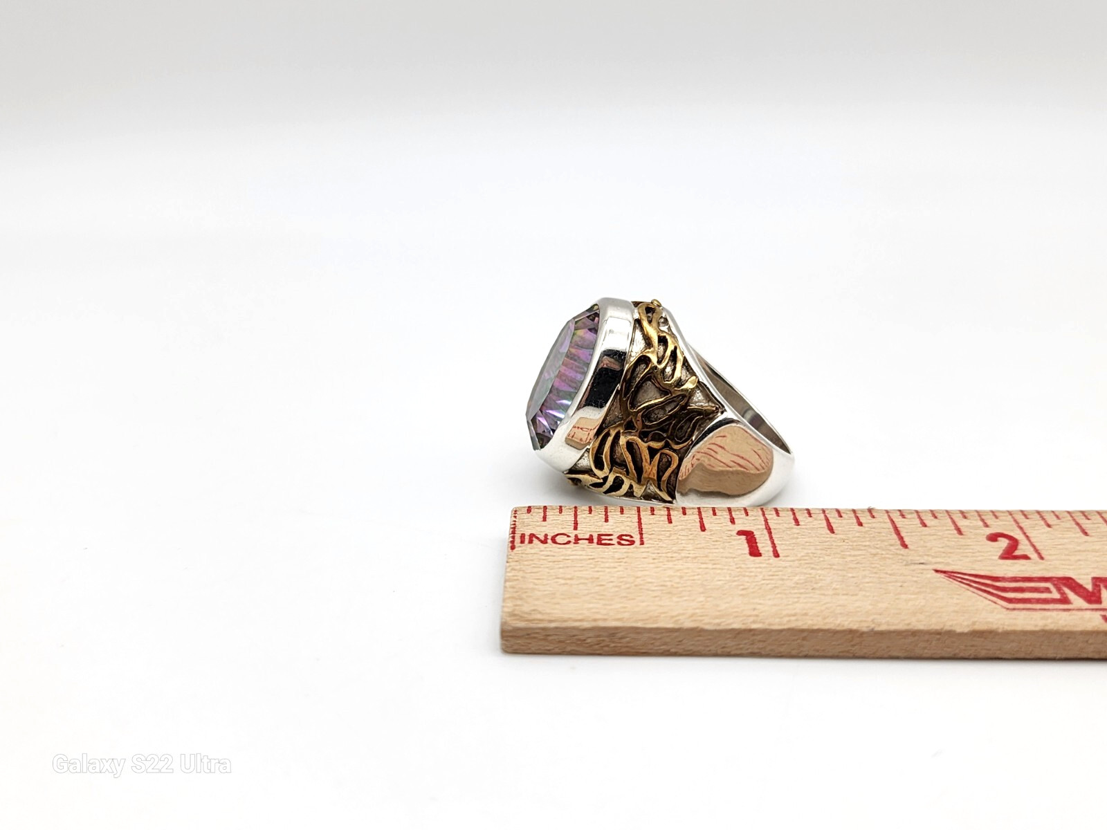 NEW DESIGNER STYLE RAINBOW MYSTIC TOPAZ 925 STERLING SILVER SZ.9 RING 17.5 GRAMS