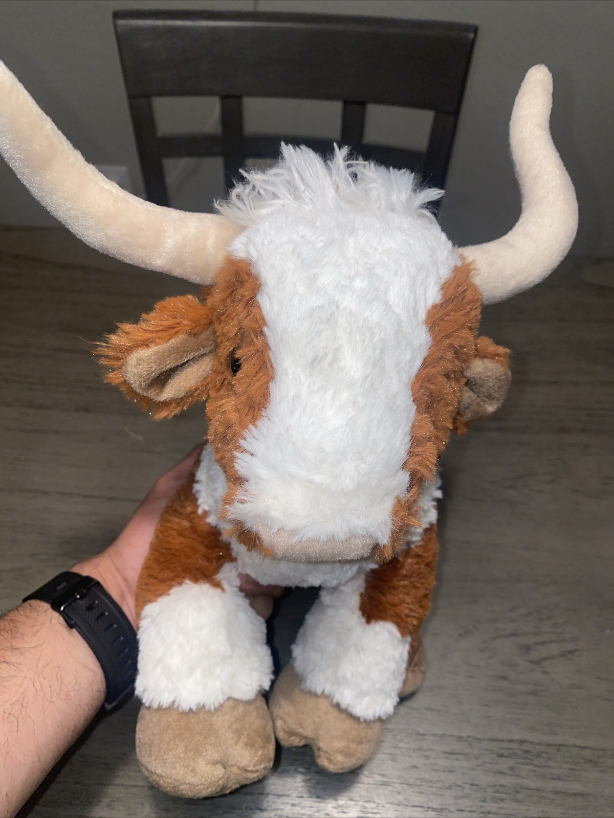 • Build A Bear BABW Longhorn Brown White Spotted Bull Steer Cow Stuffed Plush 13"