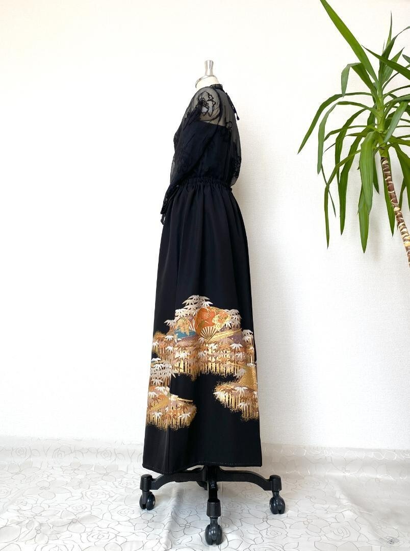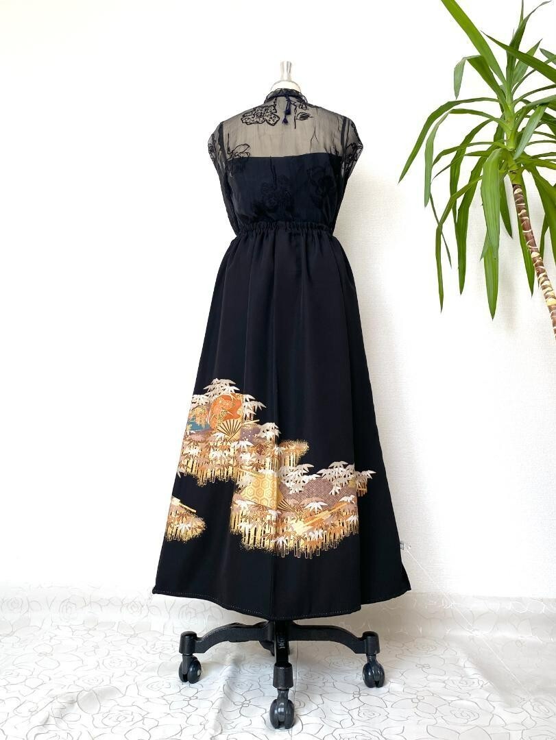 Black Kimono Remake Long Skirt from Japan