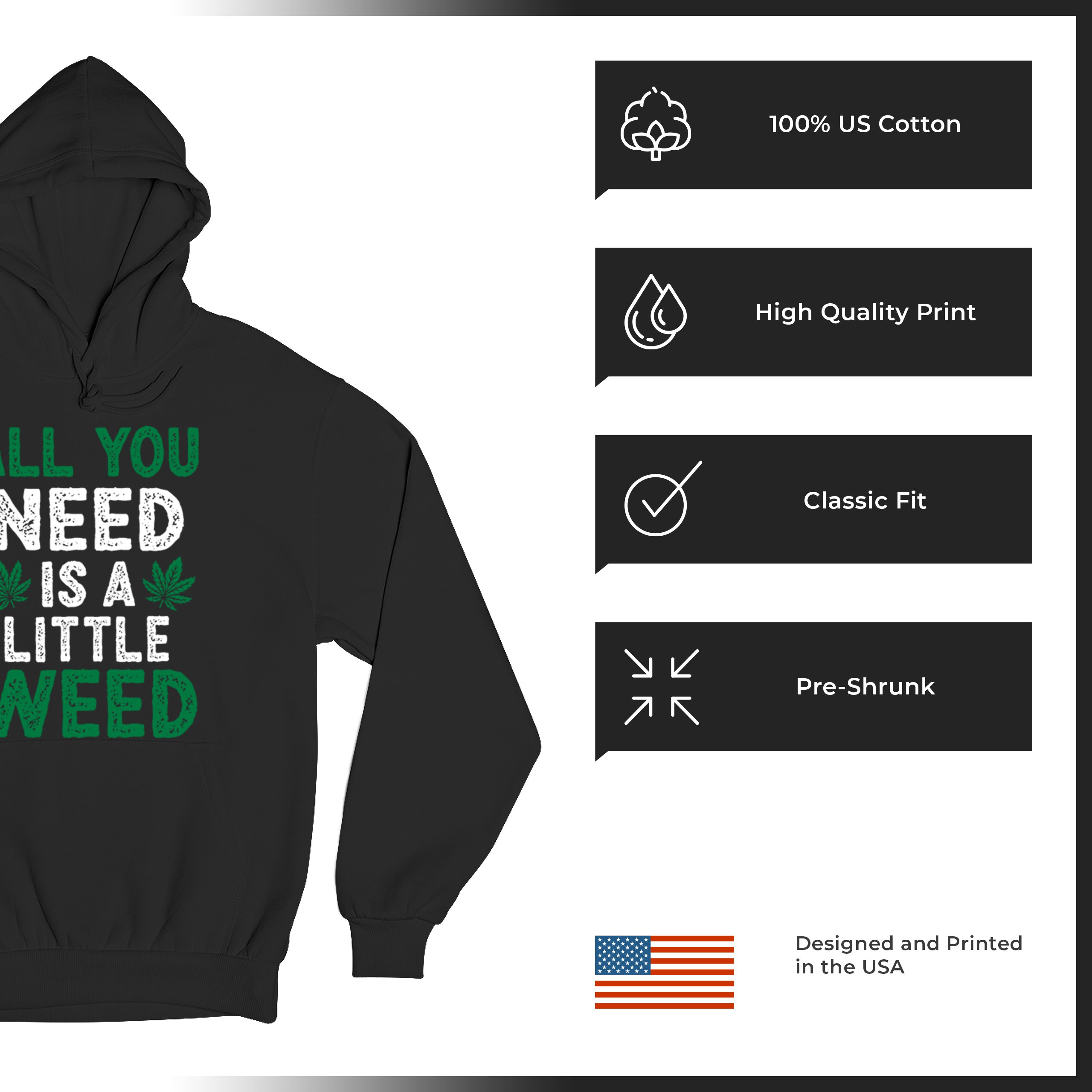 All You Need is a Little Weed Sweatshirt Funny Smoking Marijuana 420 Hoodie