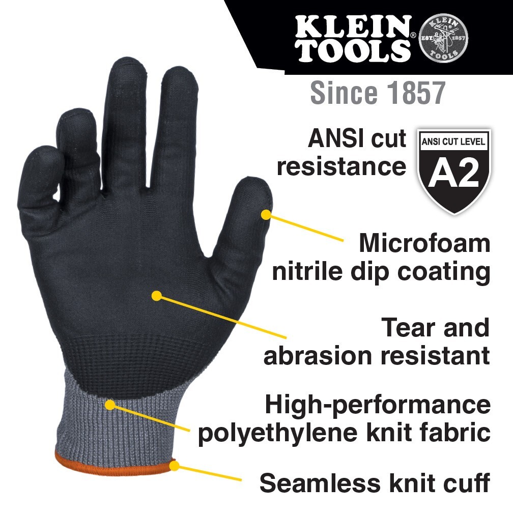как выглядит Klein Tools 60584 Knit Dipped Gloves, Cut Level A2, Touchscreen, Medium, 2-Pair фото