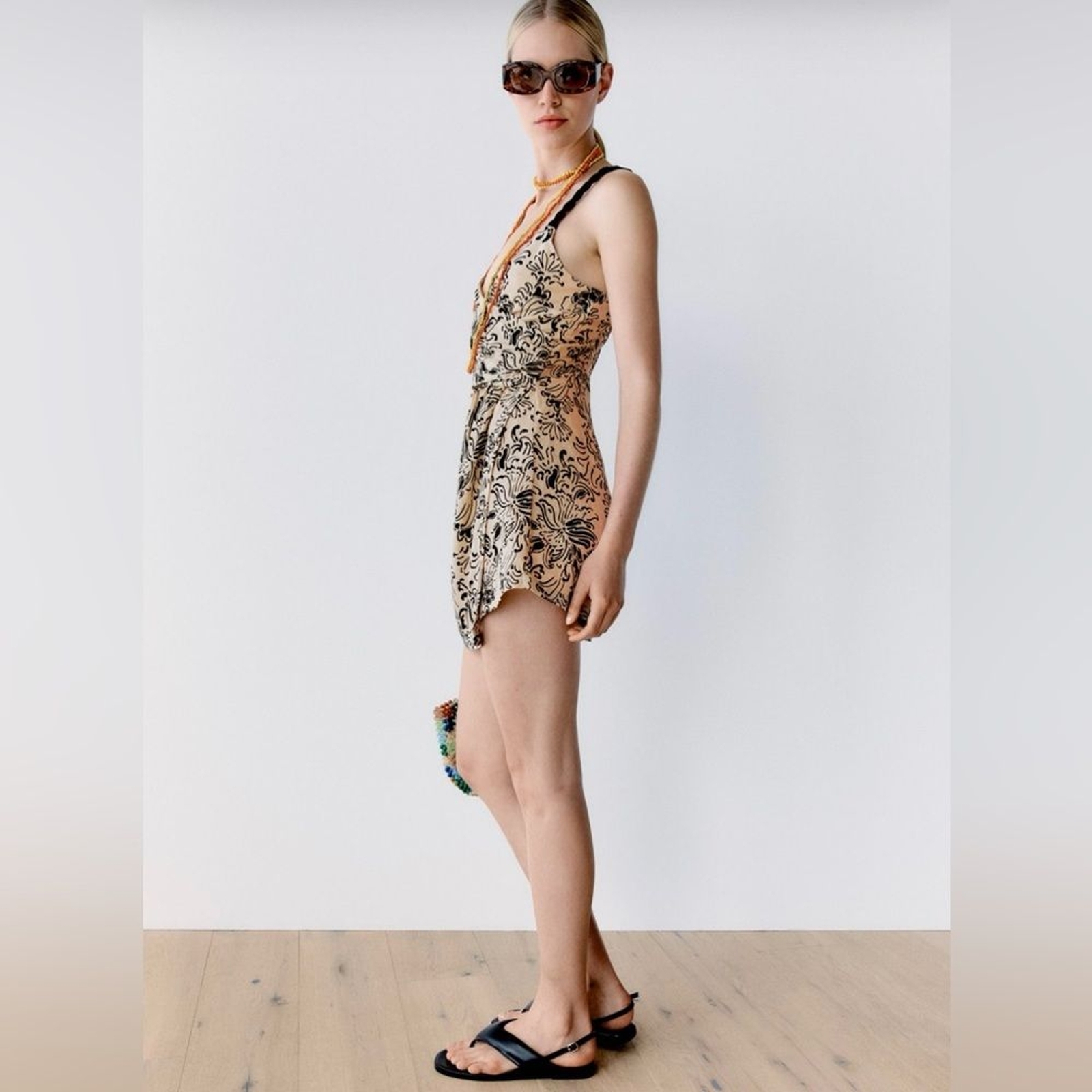 как выглядит Zara sleeveless printed rustic short romper фото
