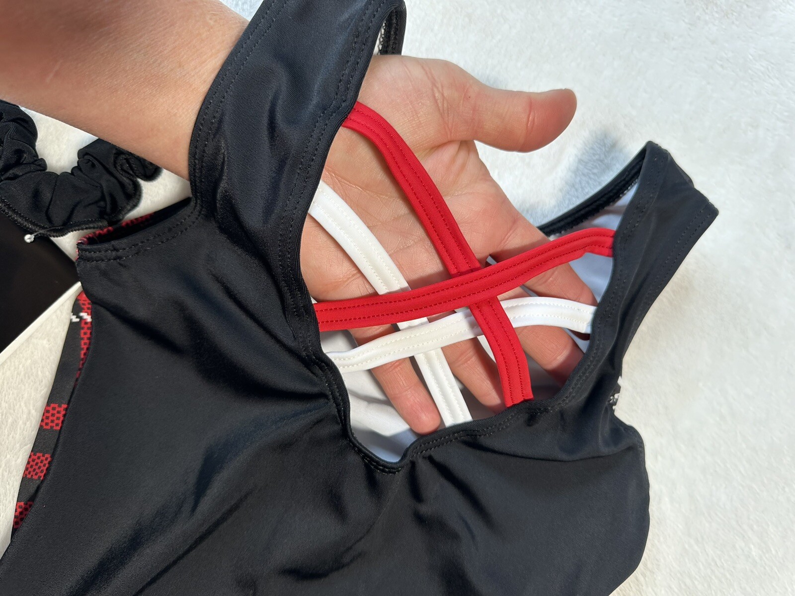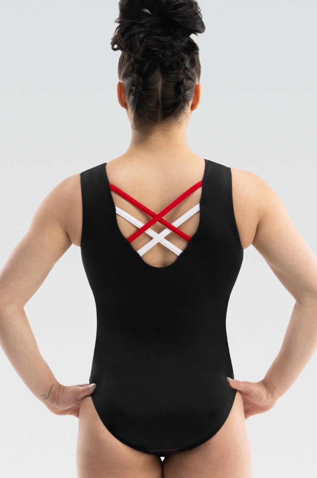 как выглядит New GK ELITE Leotard Gymnastics RESOLUTE RADIANCE Black CRISSCROSS BACK Size: CM фото