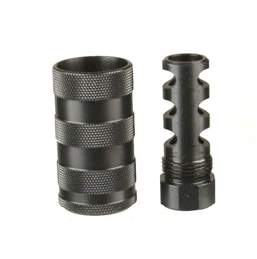 Steel Muzzle Brake 5/8x24 TPI W 13/16-16 Sleeve Sound Forwarder F 8.6mm Blackout