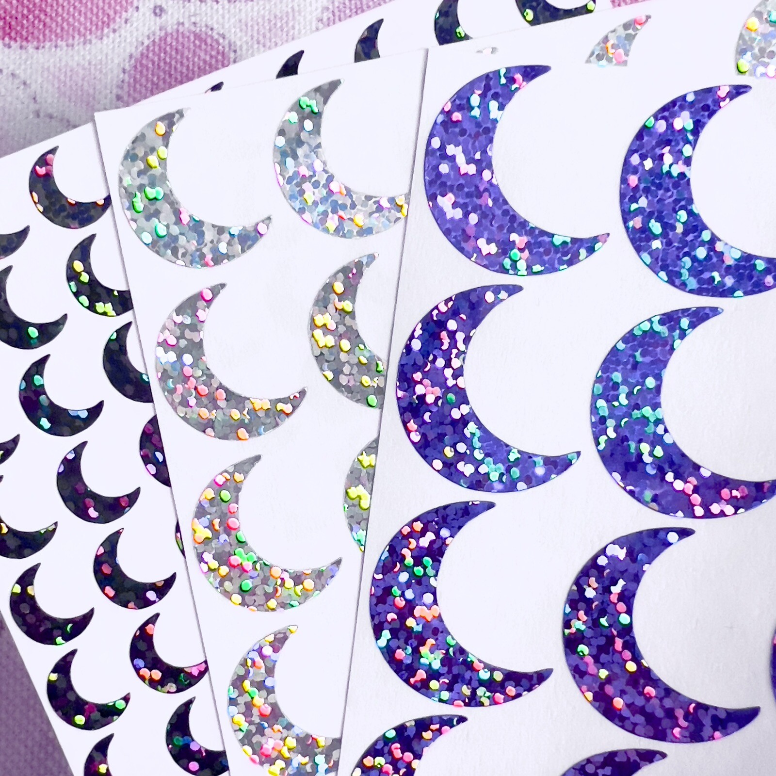 Holographic Sparkle Moon Sticker Sheet - Choose a Size Color