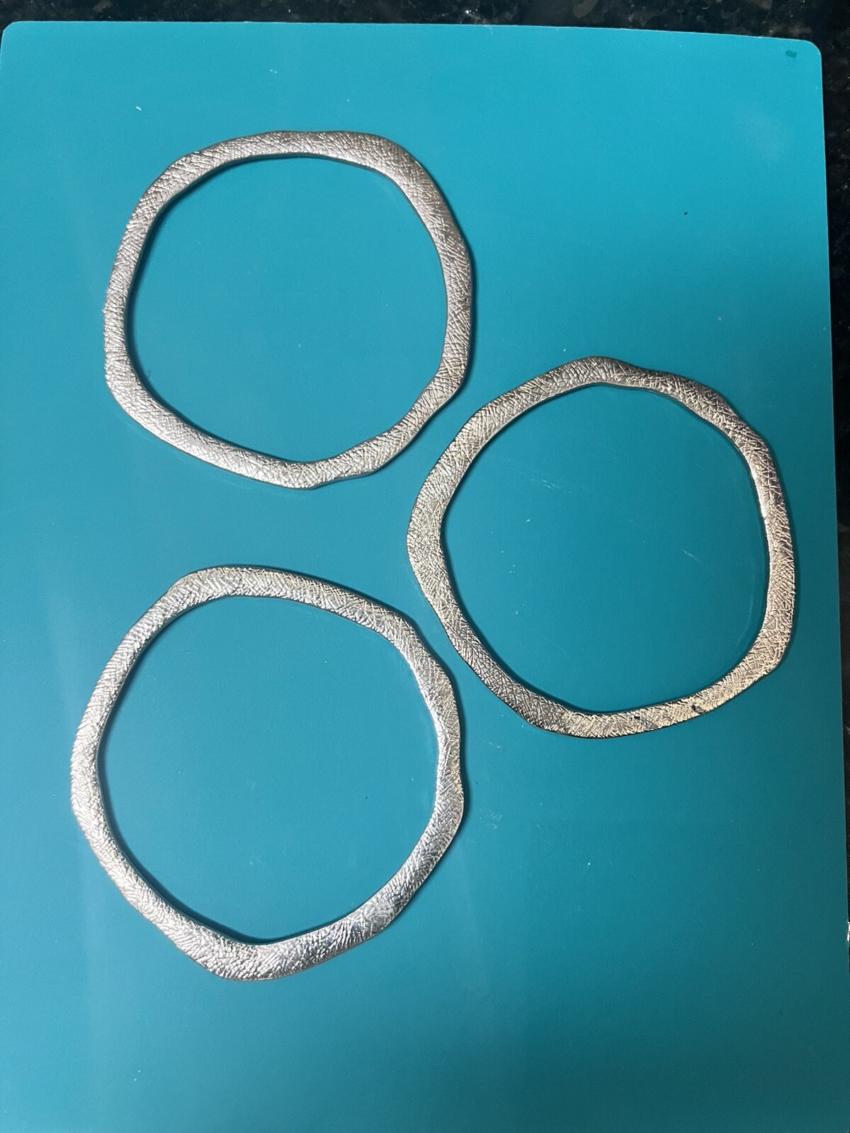Silver Tone Metal Etched Stackable Bangle Bracelets