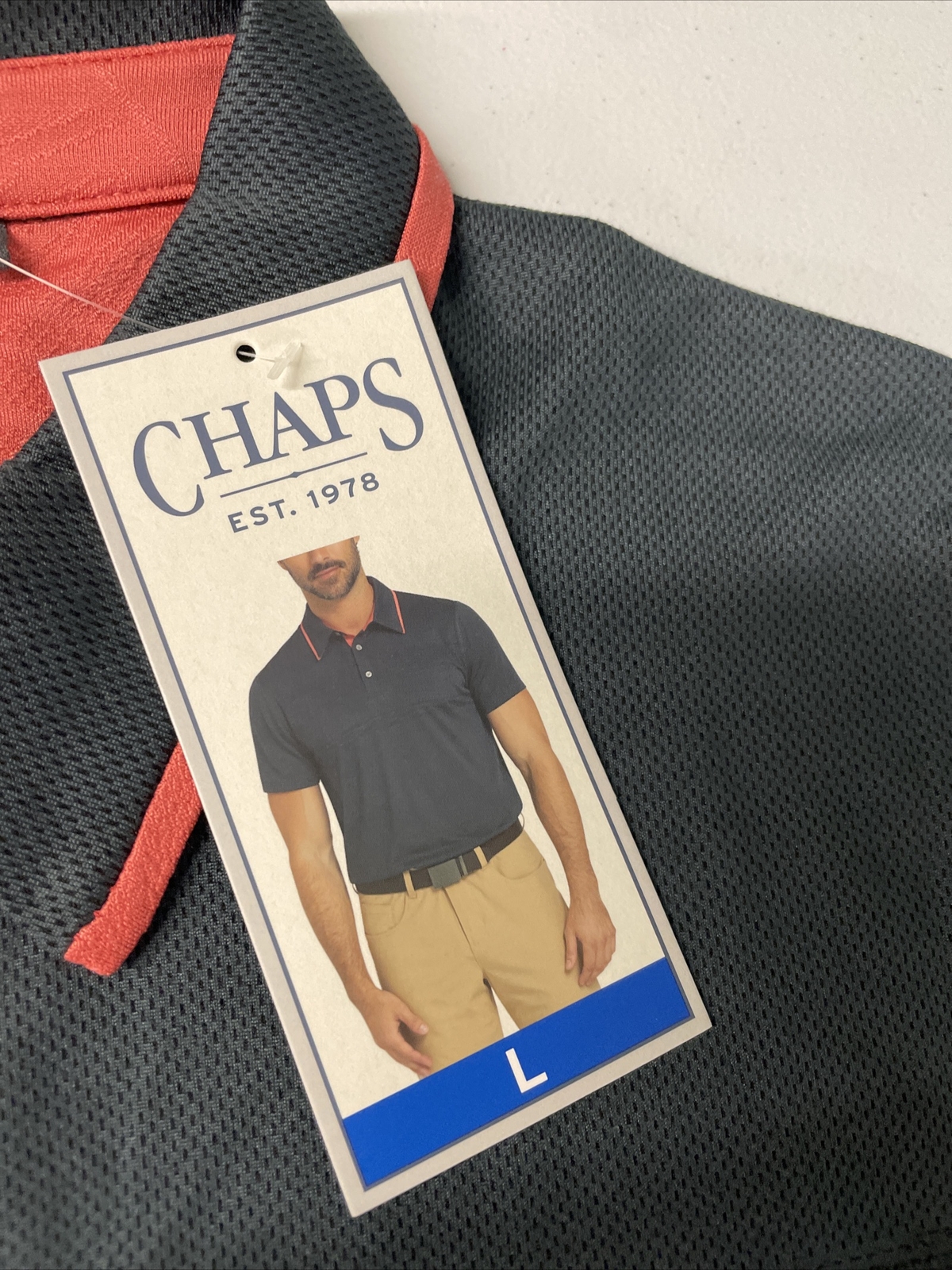 как выглядит CHAPS Men Short Sleeve Stretch Moisture Wicking Golf Polo Shirt BLACK Trim LARGE фото