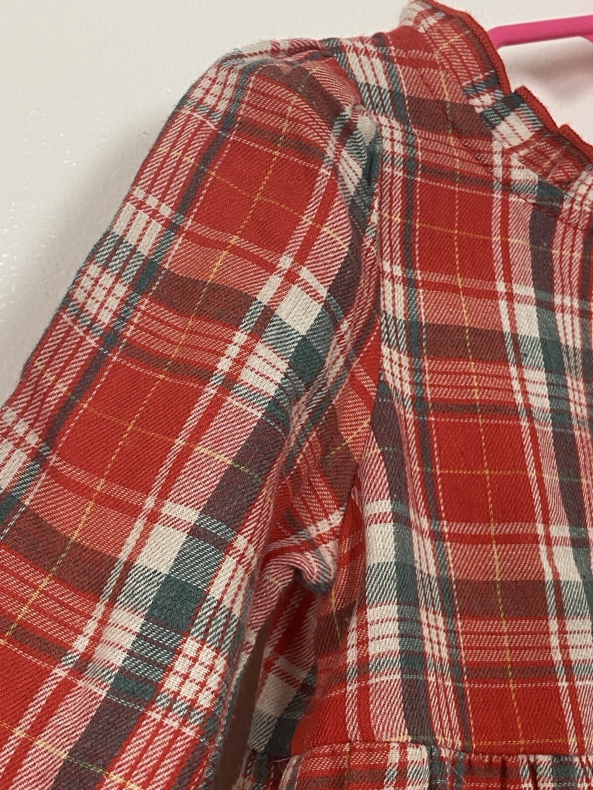 Cat Jack Toddler Red Plaid Tiered Mini Dress Ruffle Neck Pockets Size 2T