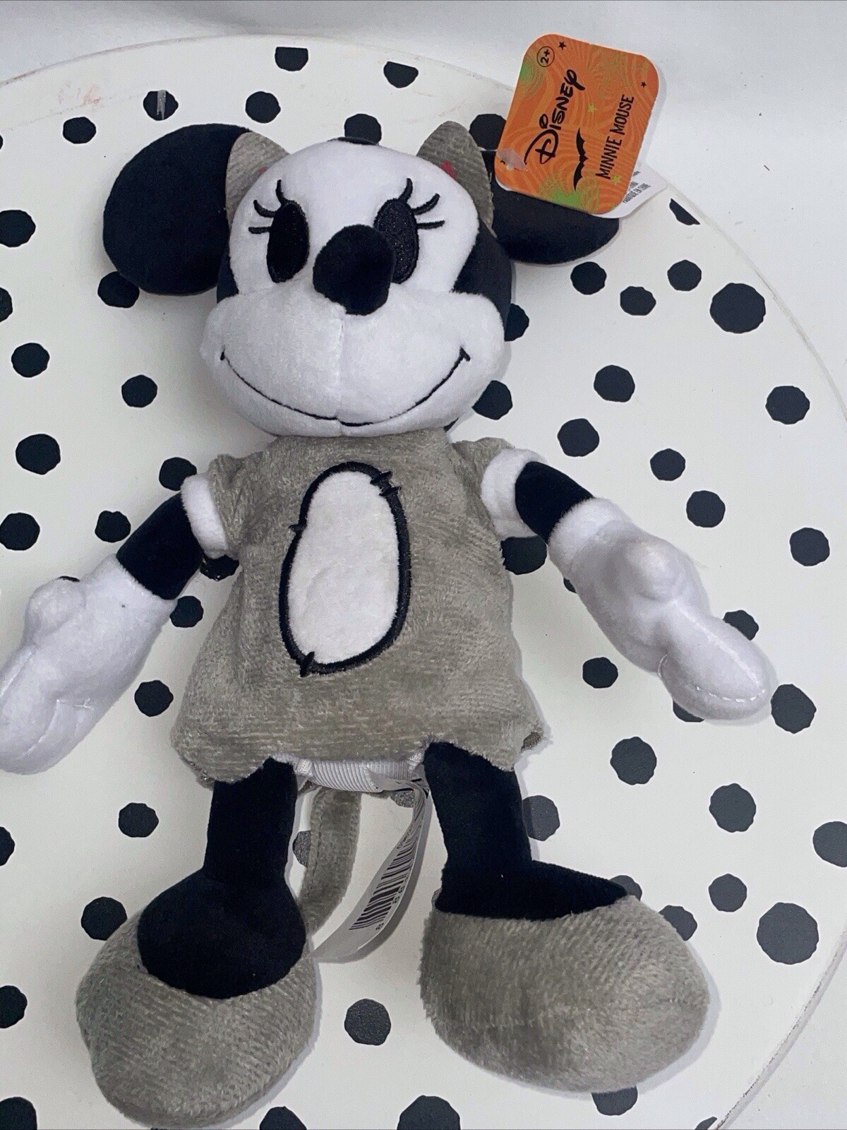как выглядит Disney Halloween Minnie Mouse Beanie Plush black white Just Play 10" фото