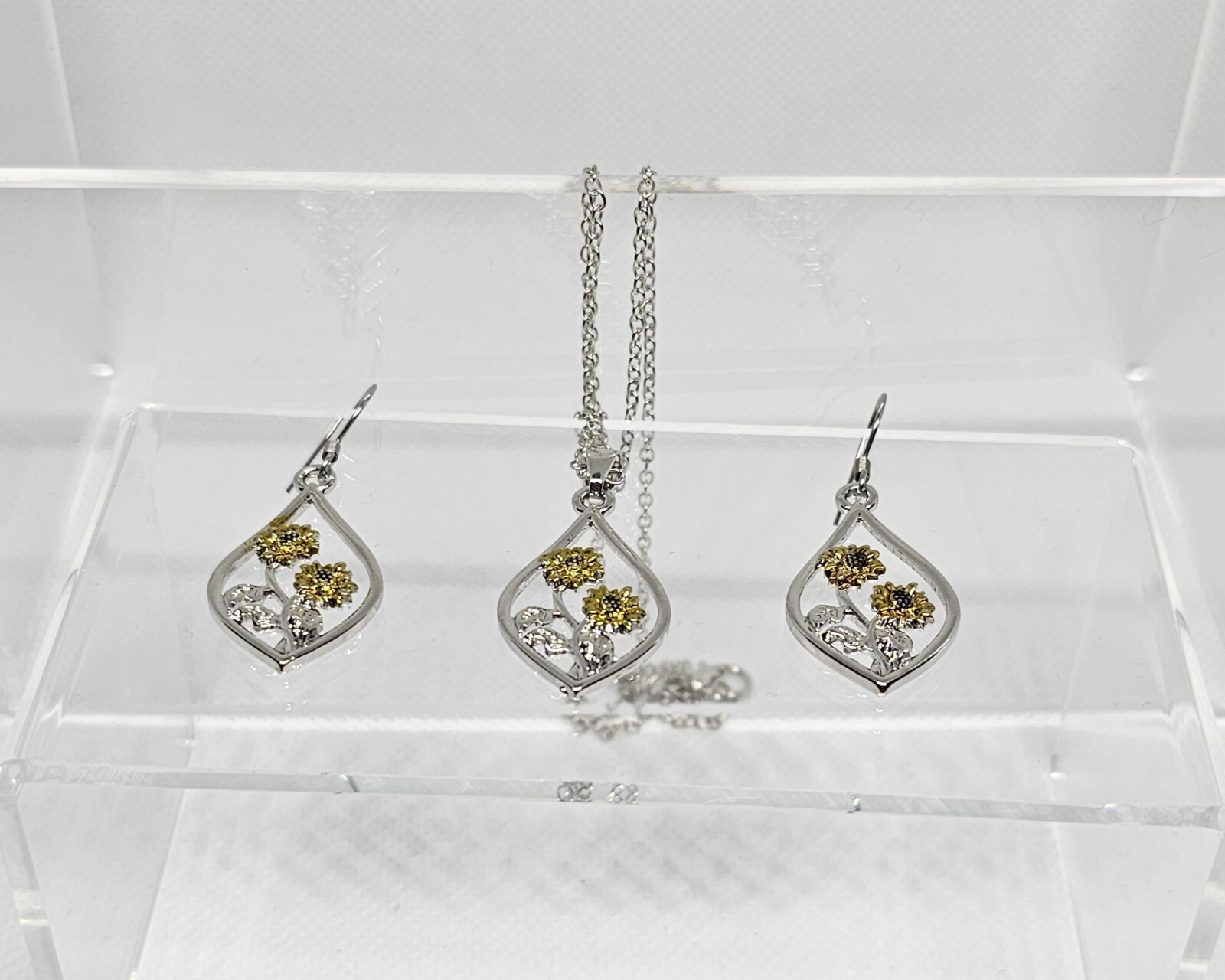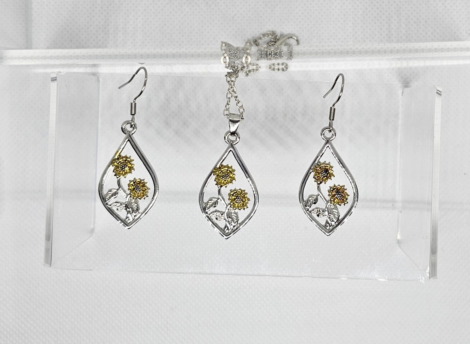как выглядит 3 Piece Sunflower Jewelry Set Earrings/Necklace NEW фото