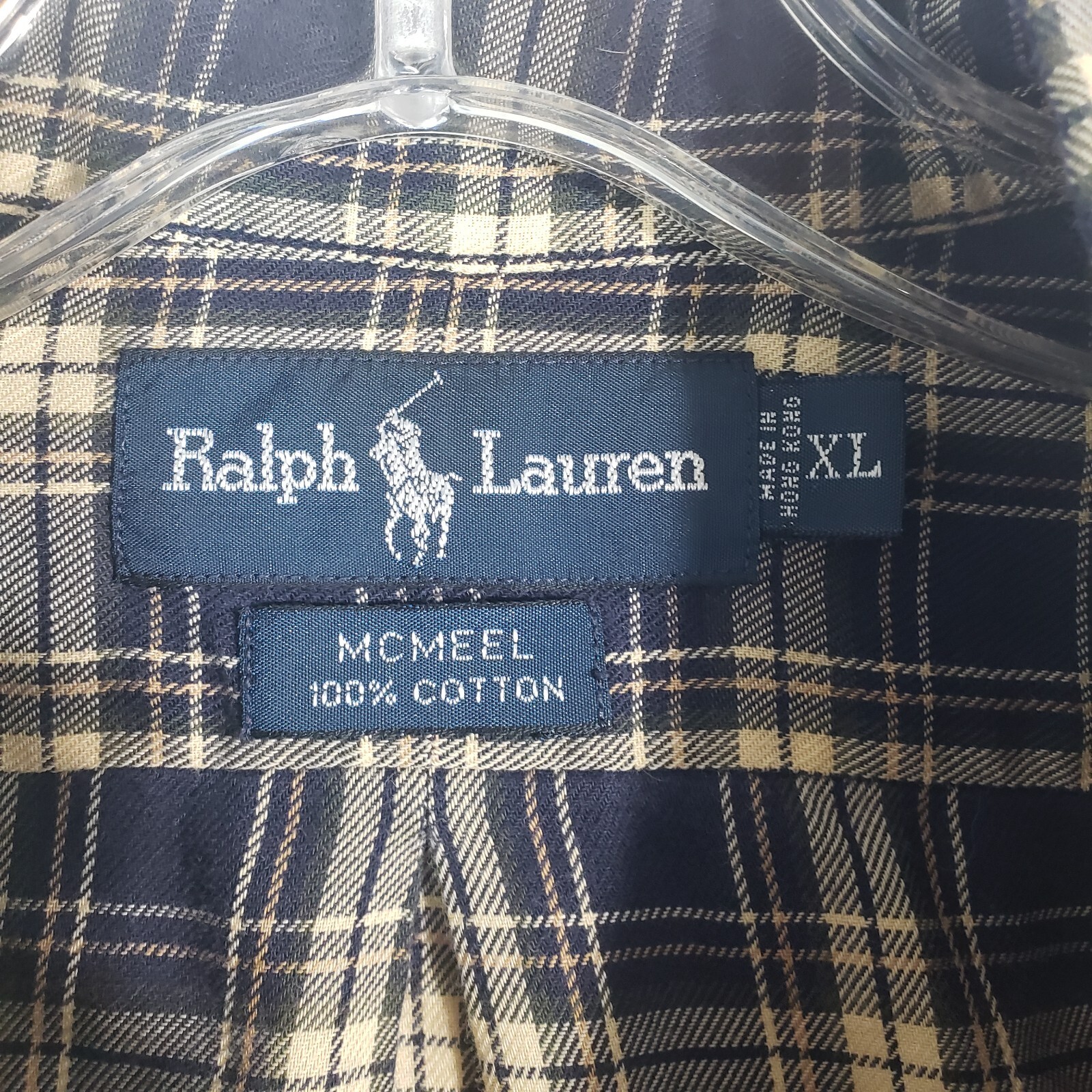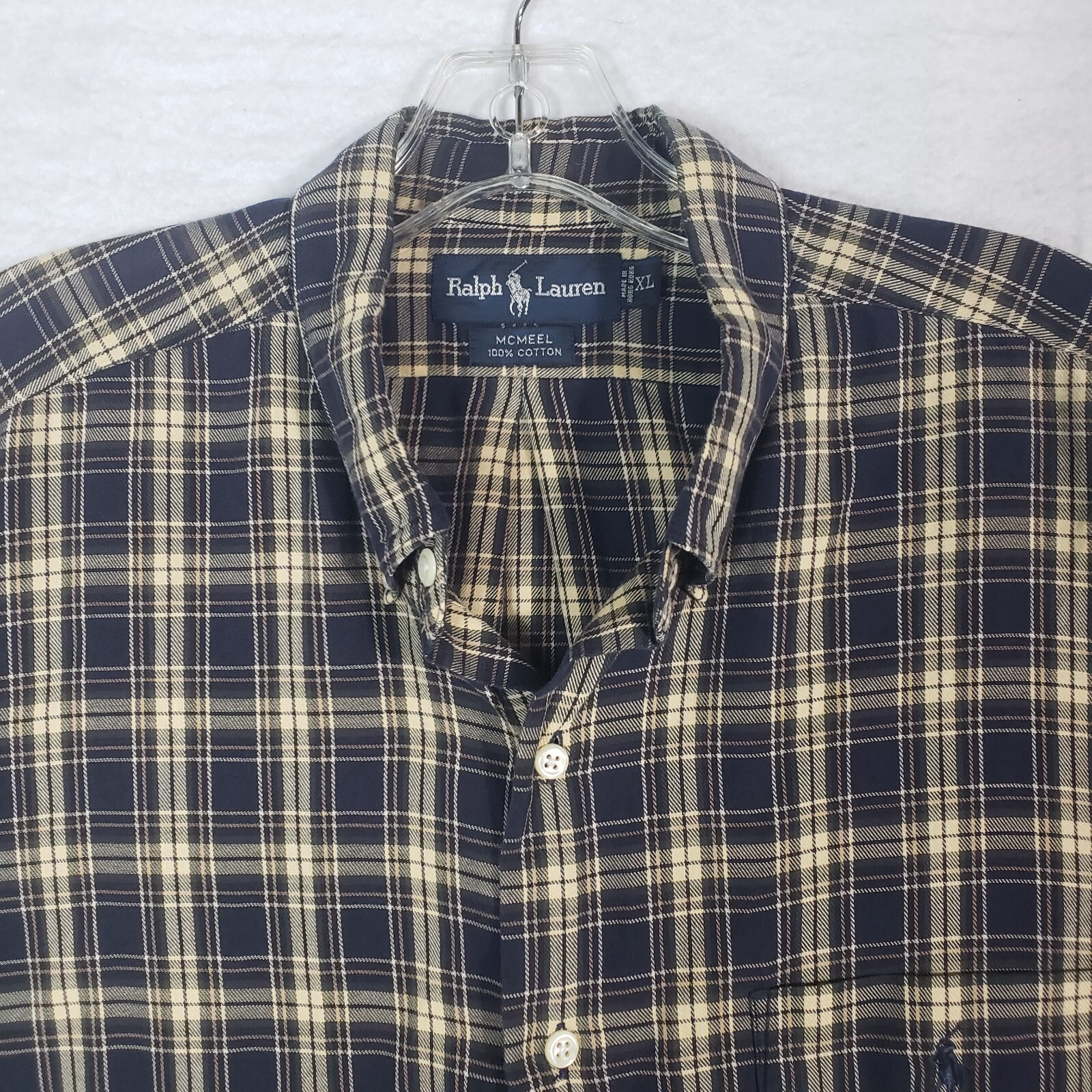 Ralph Lauren McMeel Mens Dress Shirt XL XLarge Blue Plaid Pocket Long Sleeve
