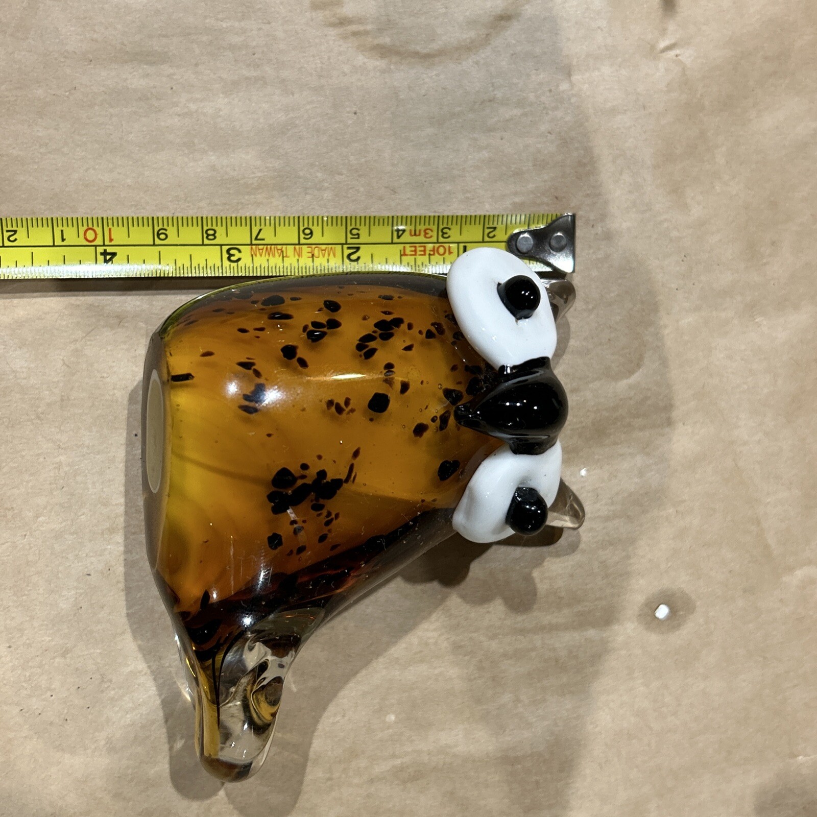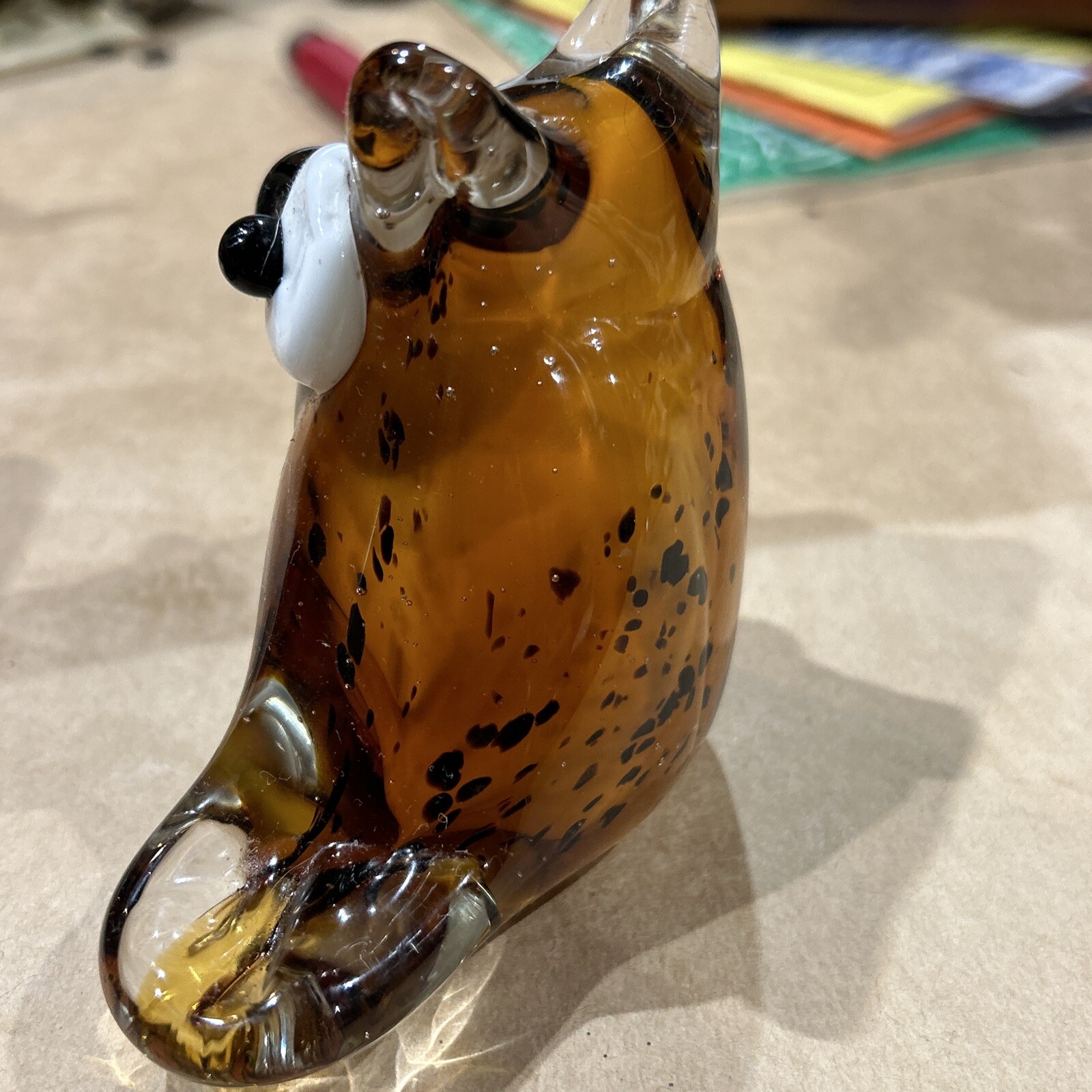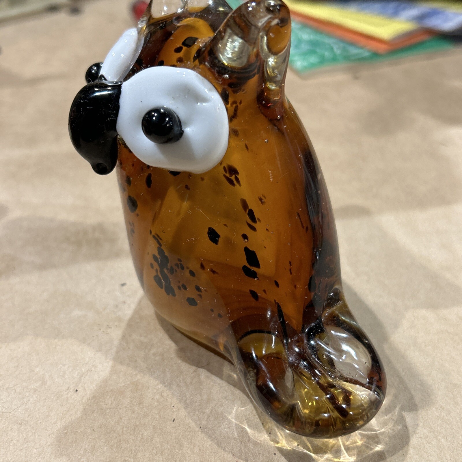 как выглядит Hand Blown Art Glass Owl Figurine Black Gold White / Murano Or Murano Style фото
