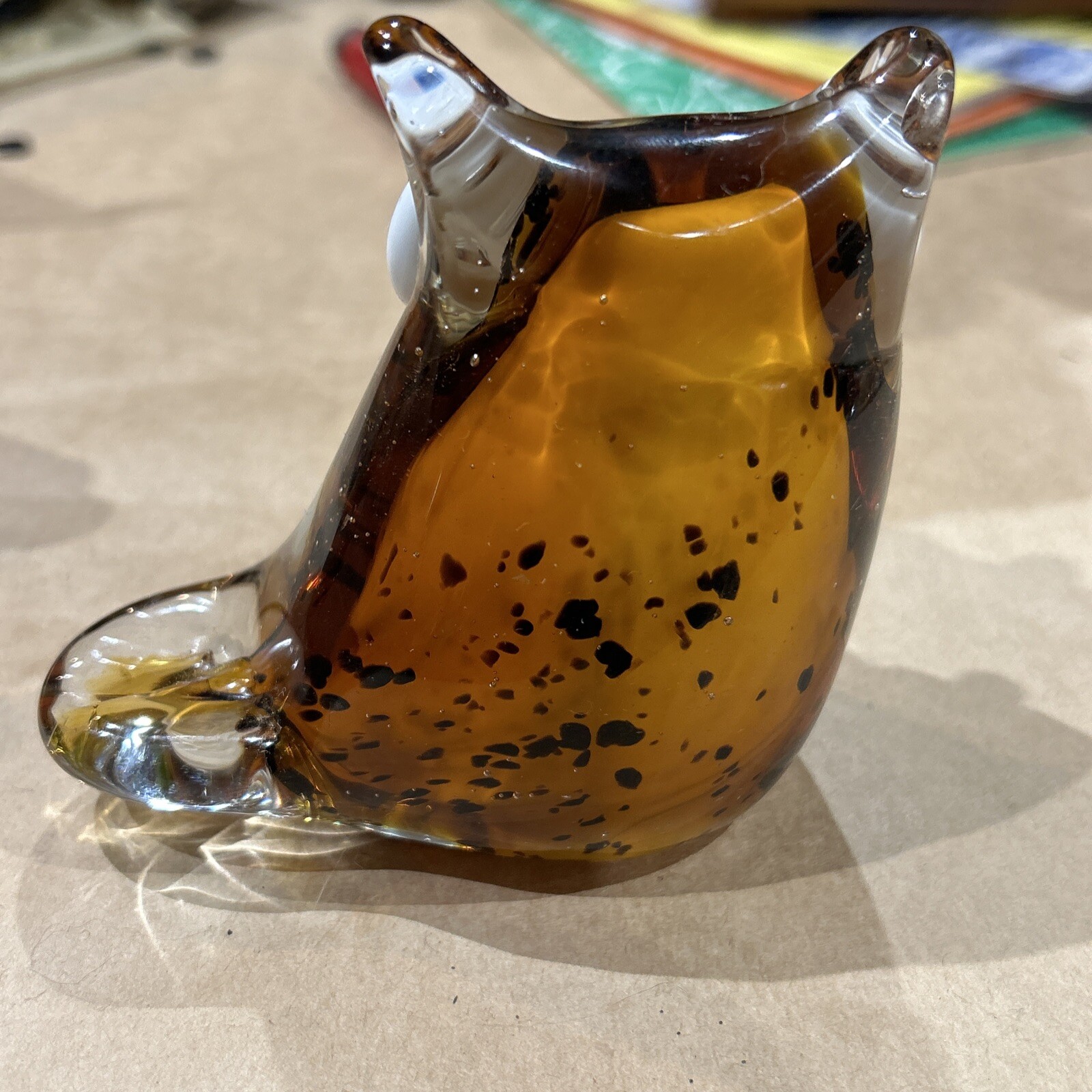 Hand Blown Art Glass Owl Figurine Black Gold White / Murano Or Murano Style